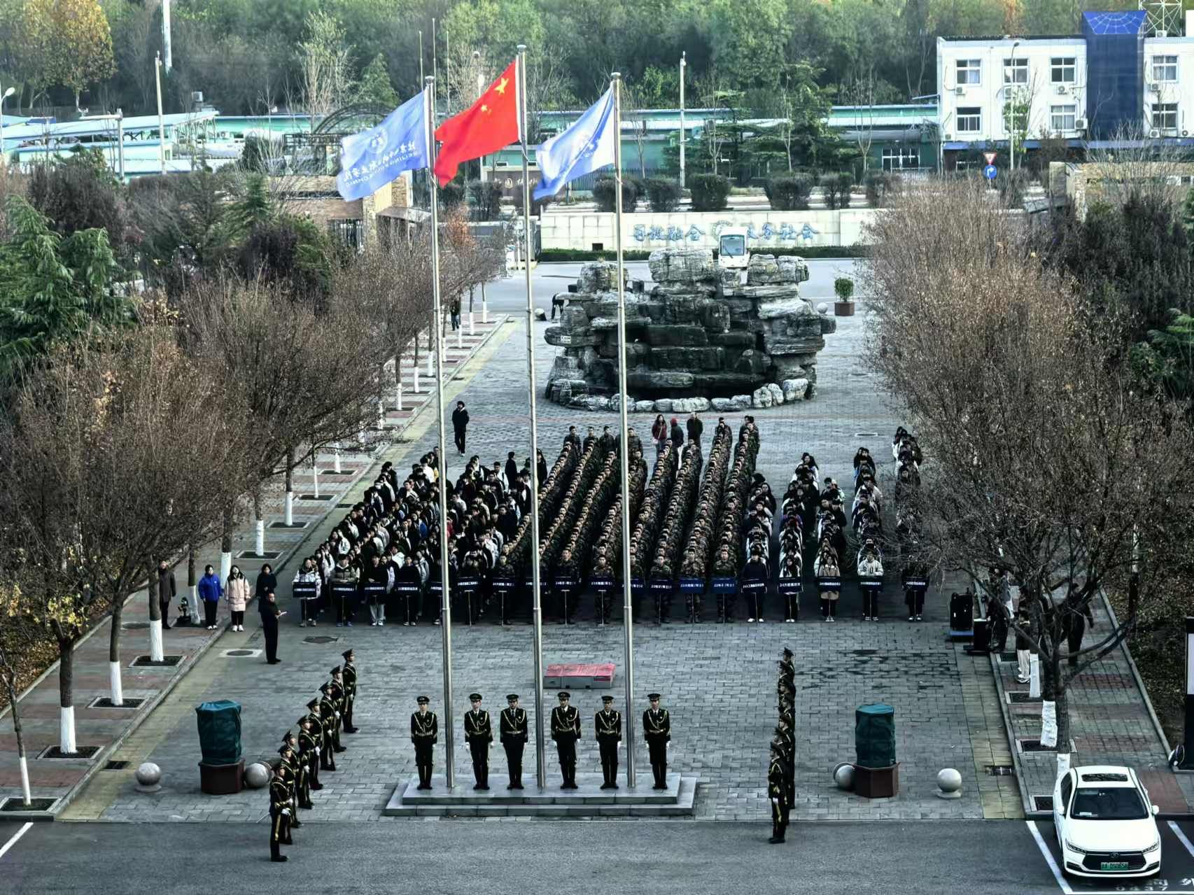 为弘扬爱国主义精神,传承红色文化基因,激发学生的爱国热情与历史使命感、责任感,营造“以赛促学、以学促行”的积极氛围,以竞赛为强大引擎驱动学习热情,集成电路学院(人工智能学院)于11月18日在行政楼前举行“匠心筑梦,技能报国”主题升旗仪式。学院院长杨洪雪、副书记魏玉辉,全体辅导员、部分班主任、全体军士生和2024级新生参加升旗仪式。