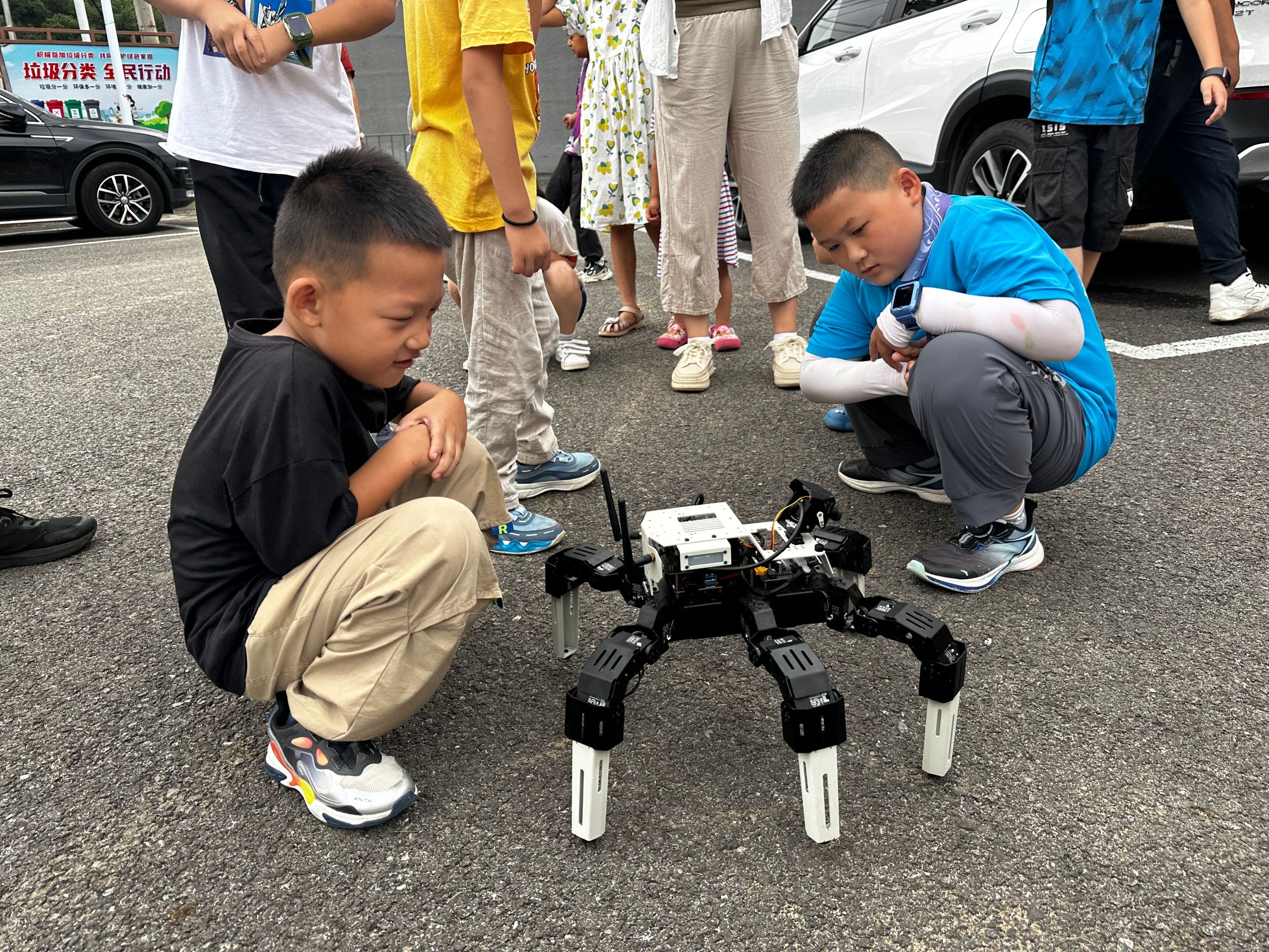 团队还精心策划,为四渡河及附近村的孩子们带来一场科技盛宴。在演示中,学生们耐心、详细地为小朋友们讲解无人机和机器人的工作原理、应用领域等知识,并安排了操作无人机飞行和“AI绘图,数字生命”机器人体验环节。