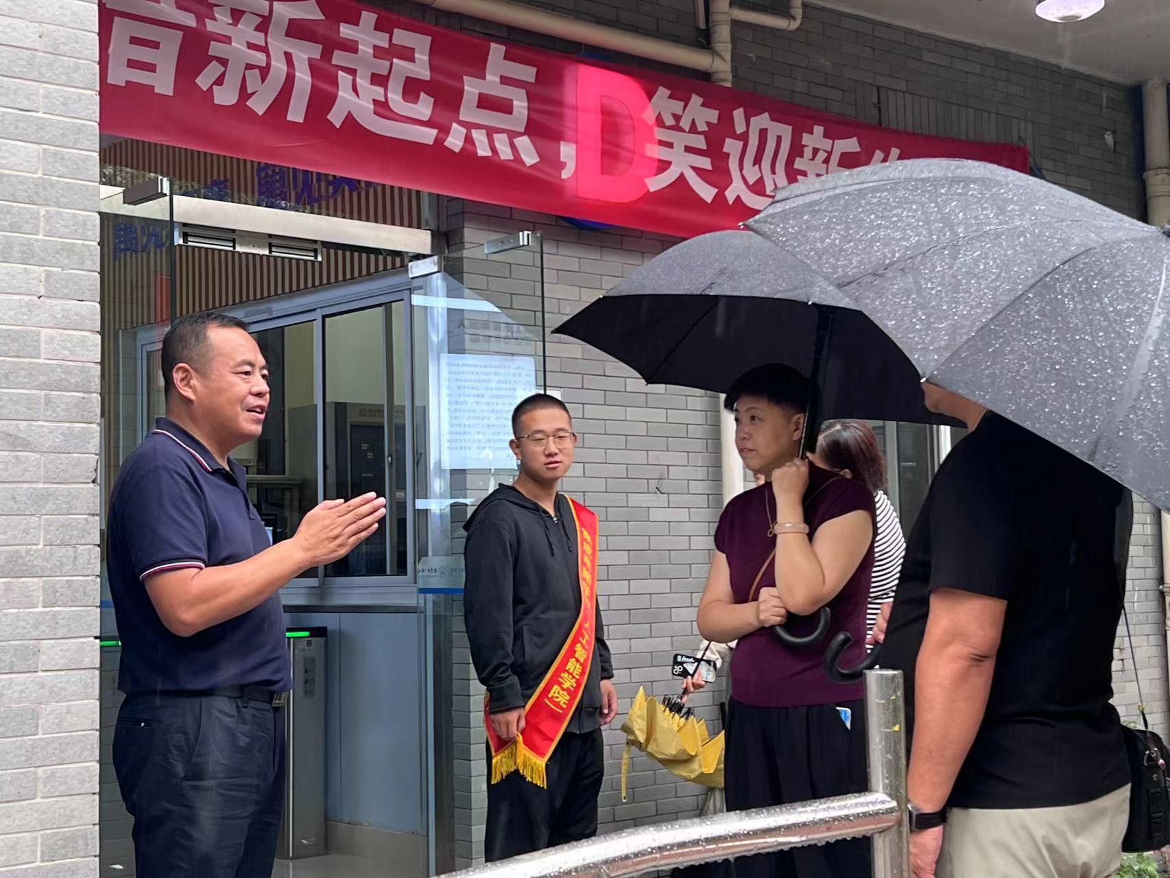 9月7日,24级新生辅导员和迎新志愿者们冒雨前往北京南站、北京西站、北京站和北京丰台站等站点做好接站准备。他们高举引导牌,主动搬运新生行李,引导新生及其家长乘坐接新生大巴。在雨天,接站人员贴心相送,为新生们撑起雨伞,用行动传递着关怀与支持,让微凉的天气充满了温情。