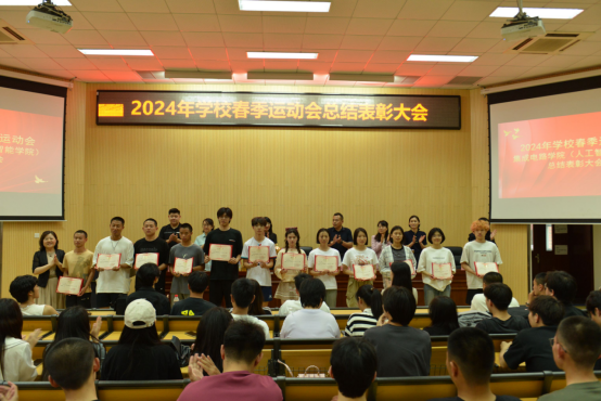 会上,大家共同观看运动会视频,重温运动会上的精彩瞬间。在2024年学校春季运动会中,学院取得了精神文明奖、男子甲组第二名、女子甲组第三名和甲组团体总分第三名的好成绩。与会领导分别为运动会个人赛和团体赛的运动员们颁发证书和奖品。