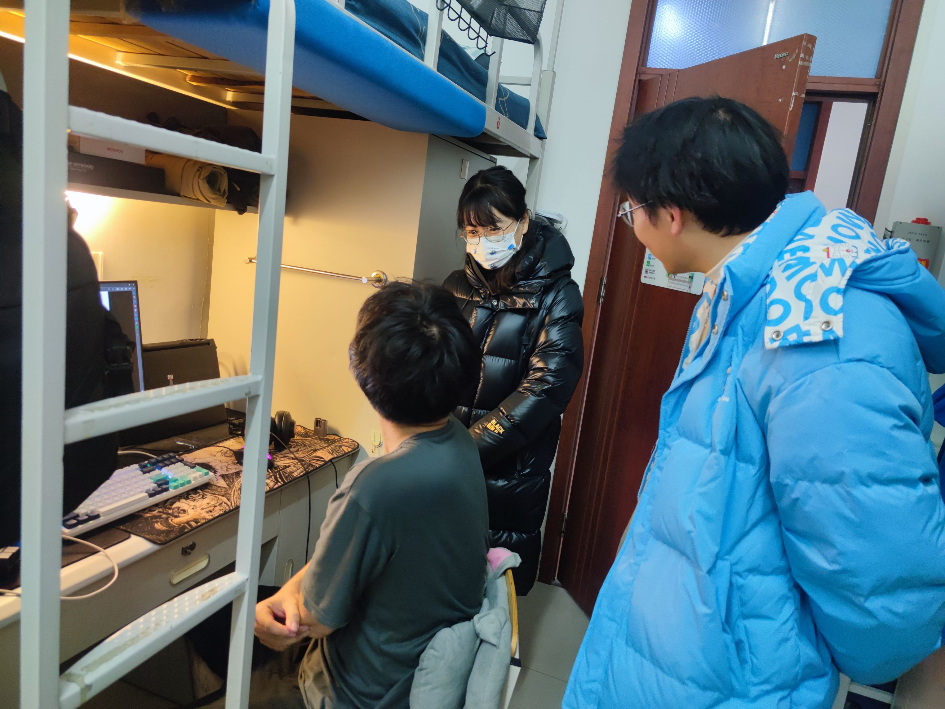 2023年12月29日,集成电路学院(人工智能学院)副院长裴春梅与辅导员前往学生公寓慰问假期留校的少数民族学生。