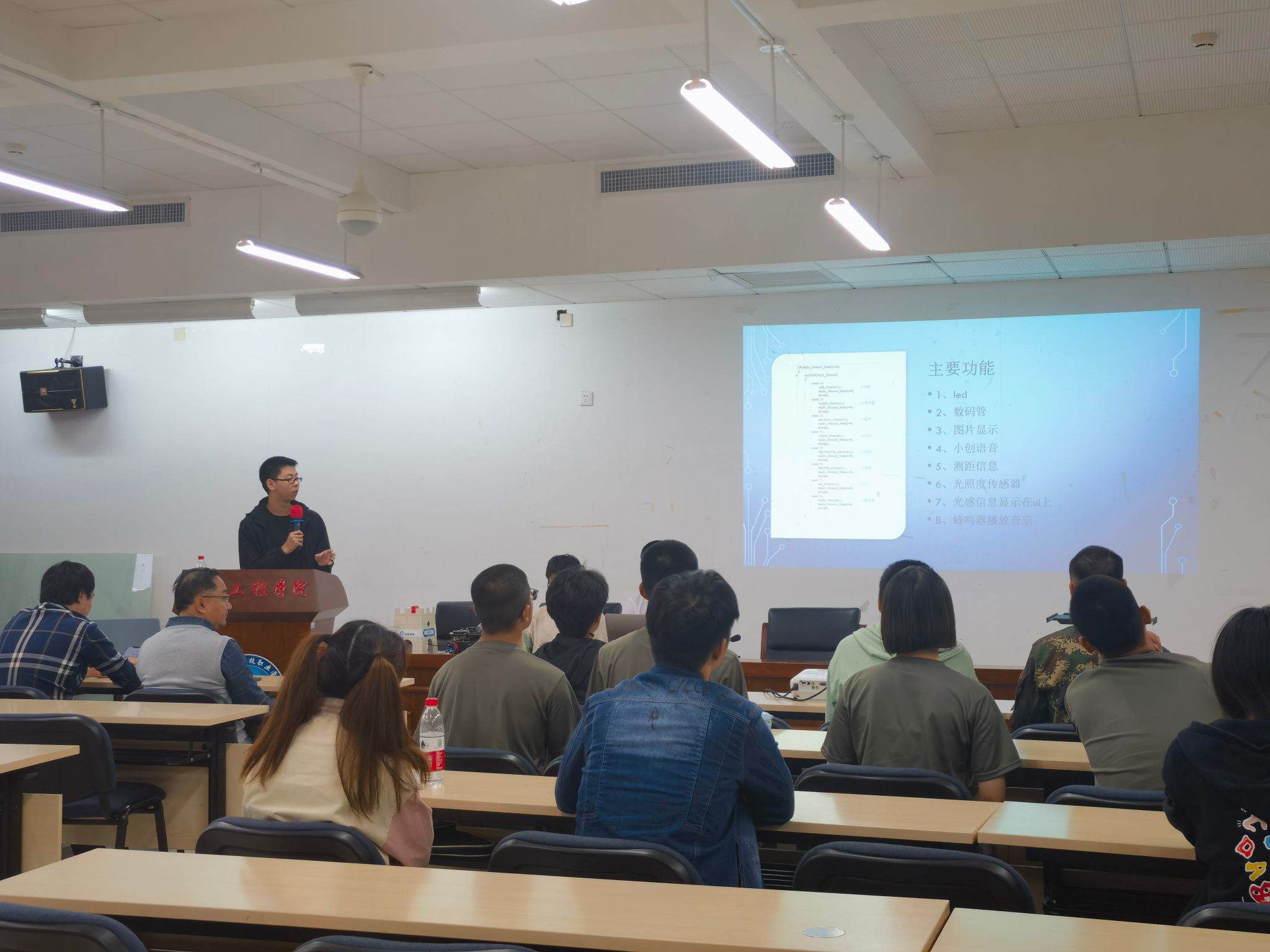 在经验交流环节,获奖团队师生轮流发言。团队指导教师杜辉指出,“嵌入式系统应用开发”赛项是我院传统赛项,历年来取得了4次一等奖、3次二等奖,这些成绩的取得离不开学校、学院各级领导的关心支持,也得益于指导教师及参赛学生的拼搏努力。三名参赛同学与各班学生代表交流了备赛经历和比赛感悟,他们认为参加竞赛是一个探索、快乐、收获的过程,使自己开阔了视野,提升了技能,他们感谢学校、学院给予的机会与平台,感谢指导老师们的悉心教导。