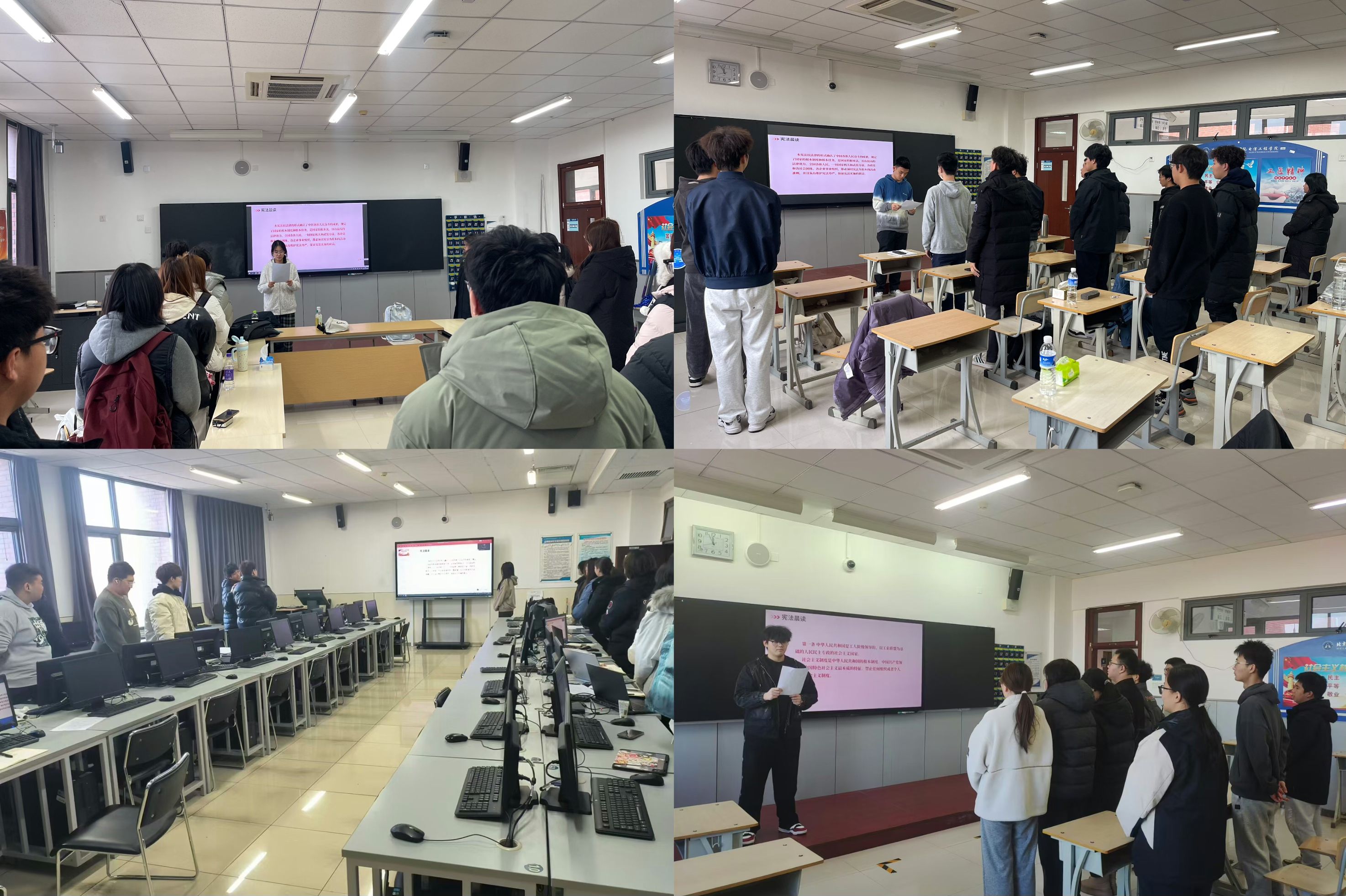 “国家通过普及理想教育、道德教育、文化教育、纪律和法治教育……加强社会主义精神文明的建设。国家倡导社会主义核心价值观,提倡爱祖国、爱人民、爱劳动、爱科学、爱社会主义的公德,在人民中进行爱国主义、集体主义和国际主义、共产主义的教育……”同学们的诵读声在学院教学楼内回荡。活动结束后,同学们纷纷表示将以此次宪法晨读为契机,继续秉承“厚德、重艺、求实、创新”的校训精神,只争朝夕、不负韶华,以奋斗者的姿态书写无愧于时代的青春华章。