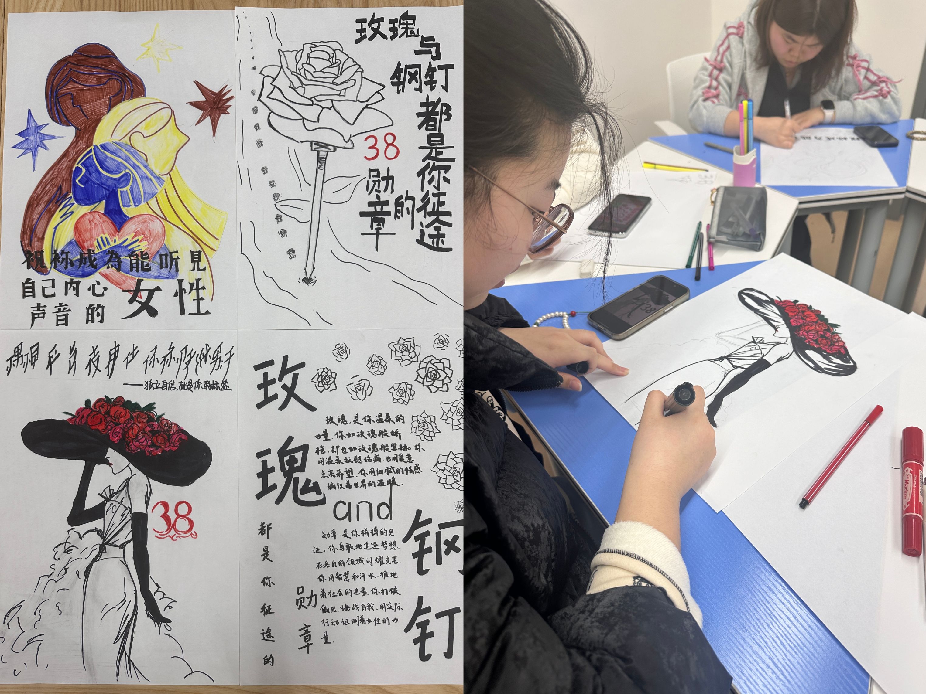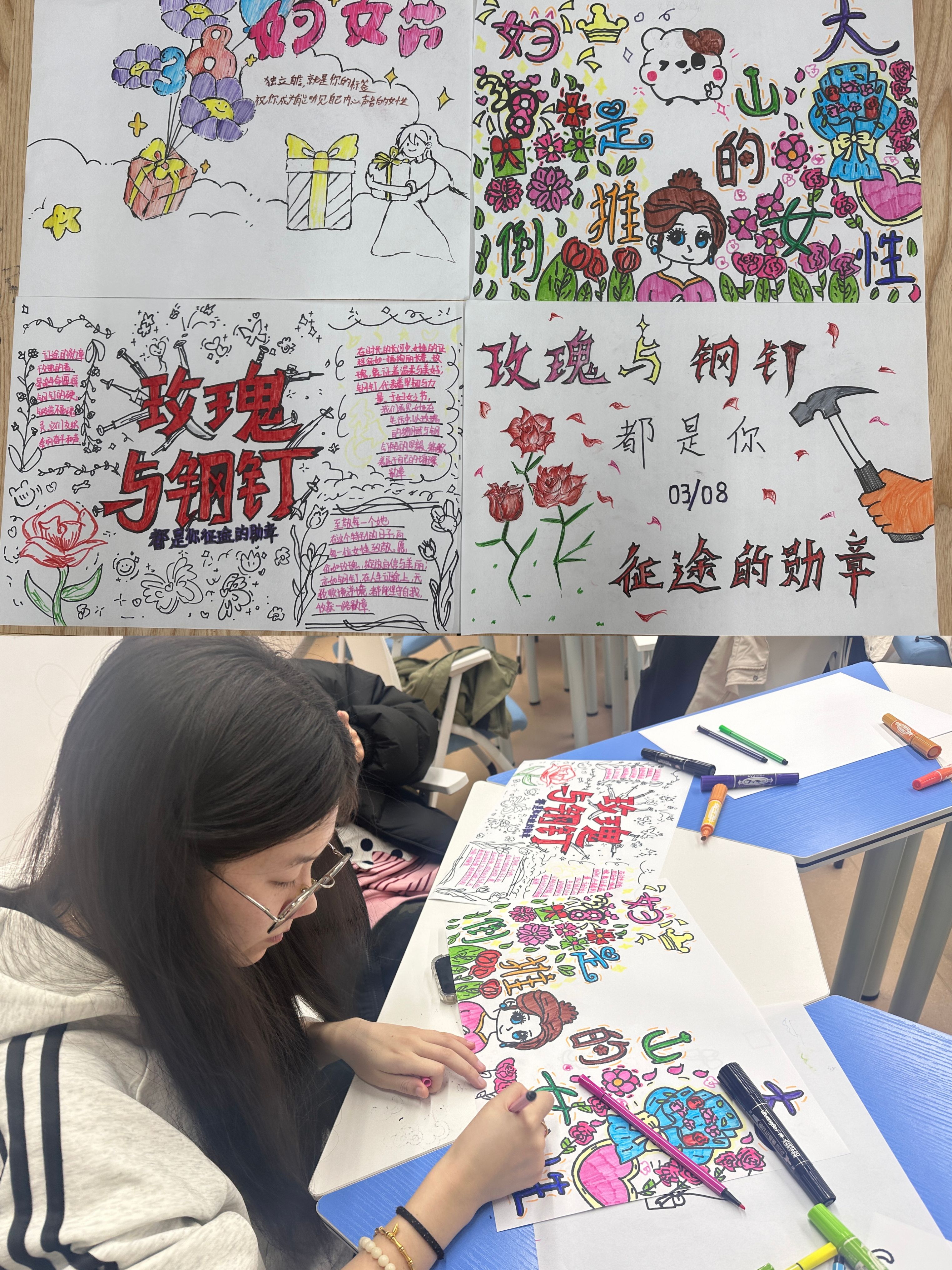 此次活动不仅吸引了众多女同学参与,也激发了男同学们的创作热情。他们用画笔表达对身边女性的尊重与赞美。一位同学饱含热情地说道:“‘她’力量越来越重要,这个活动让我更加懂得欣赏和感谢她们。”