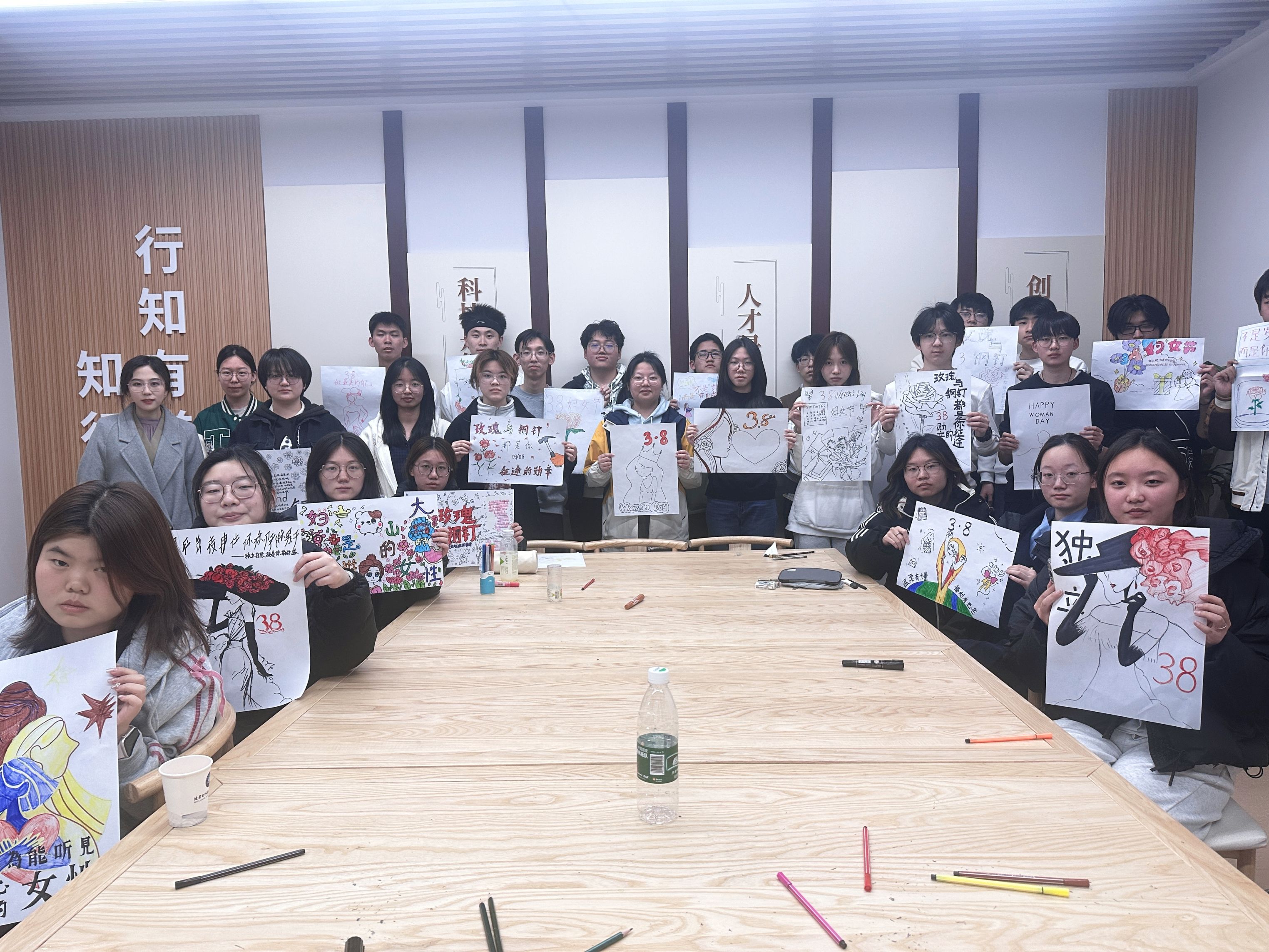 星河为幕绘巾帼,丹青执笔颂芳华。在第115个"三八"国际妇女节来临之际,3月7日,集成电路学院(人工智能学院)在学院G楼一站式学生社区举办"执笔绘星河·灼灼绽芳华"创意标语绘画活动,30余名学子以科技为笔、艺术为墨,致敬时代浪潮中破浪前行的女性力量。活动由辅导员郝丽姣主持。