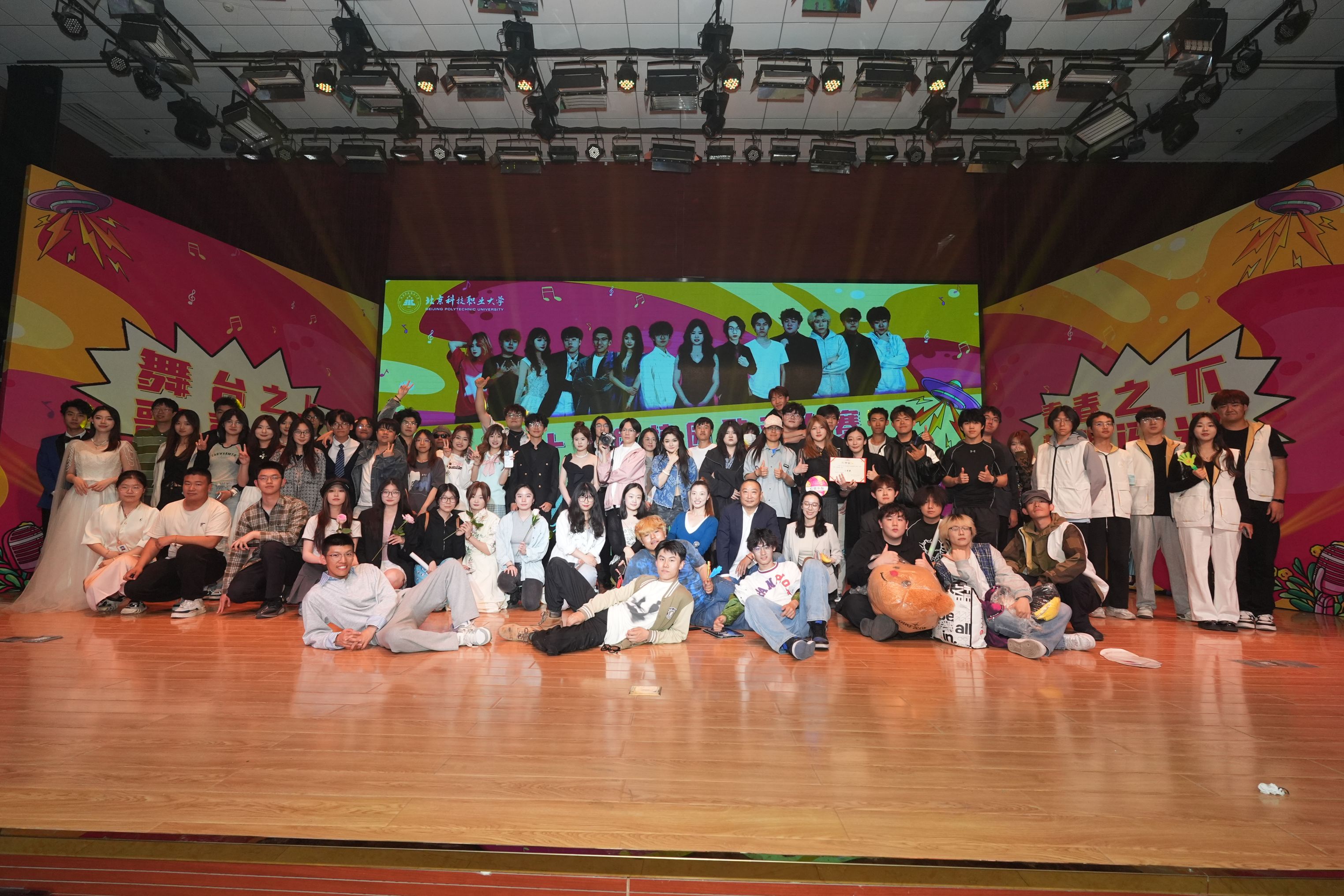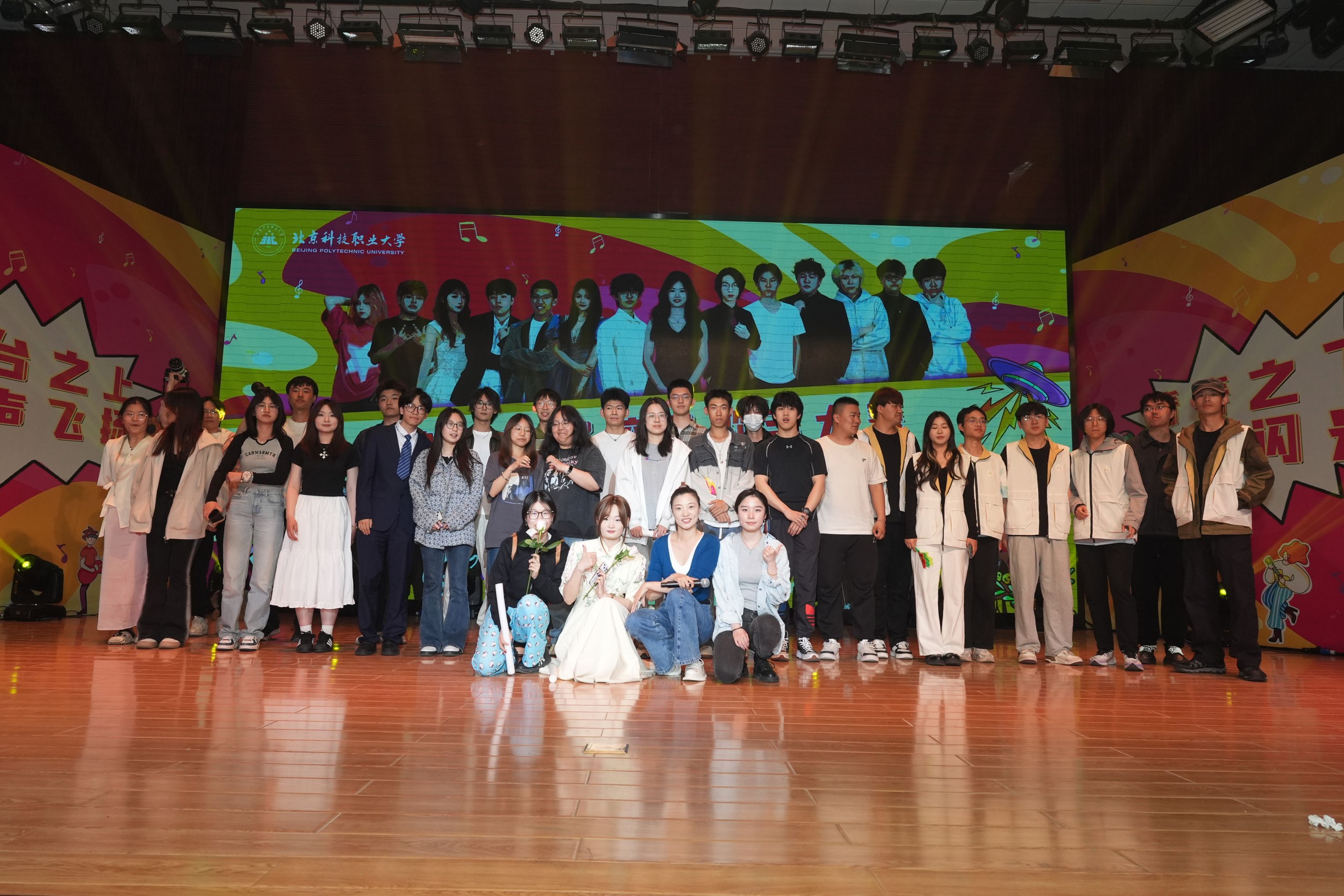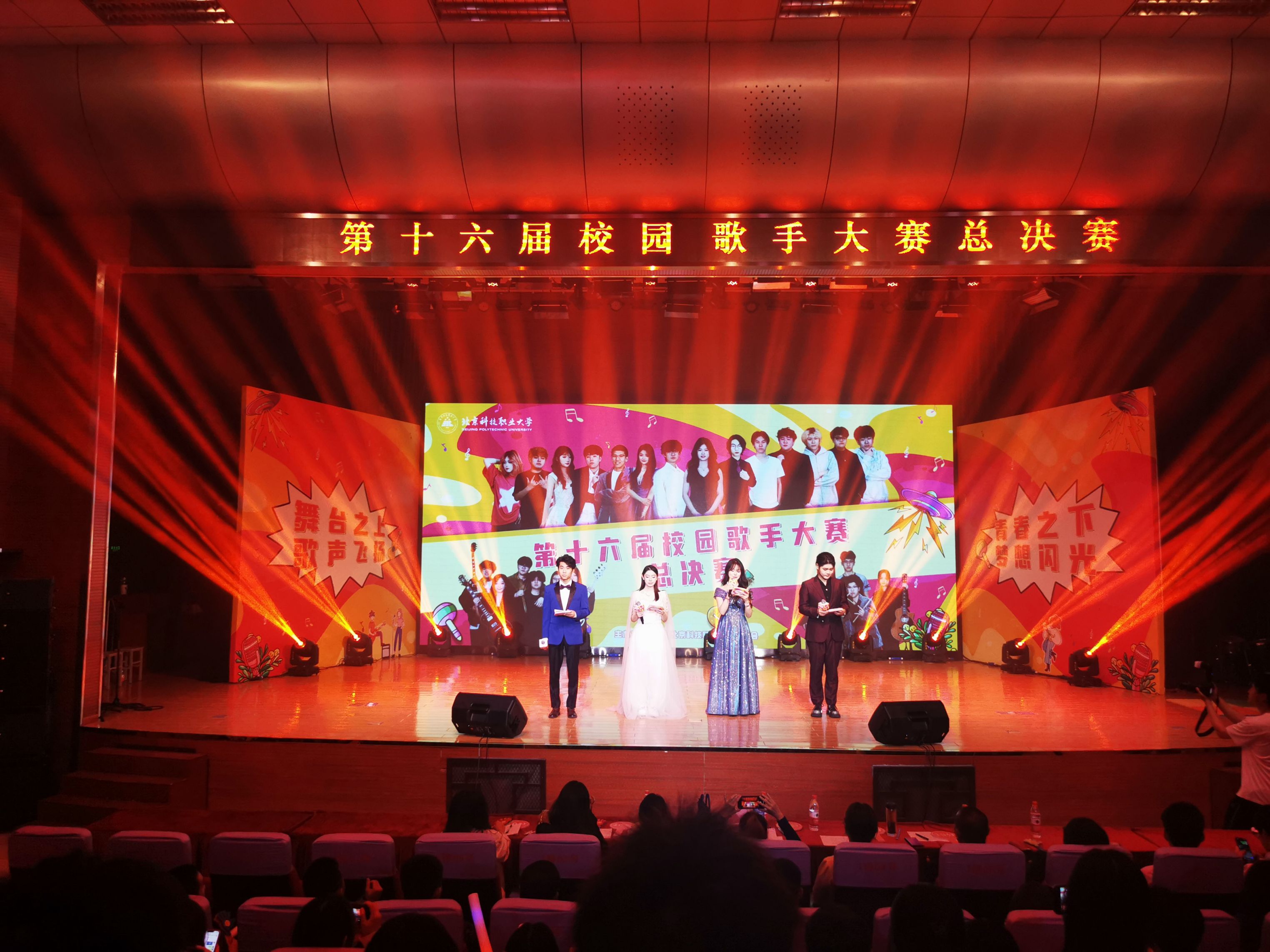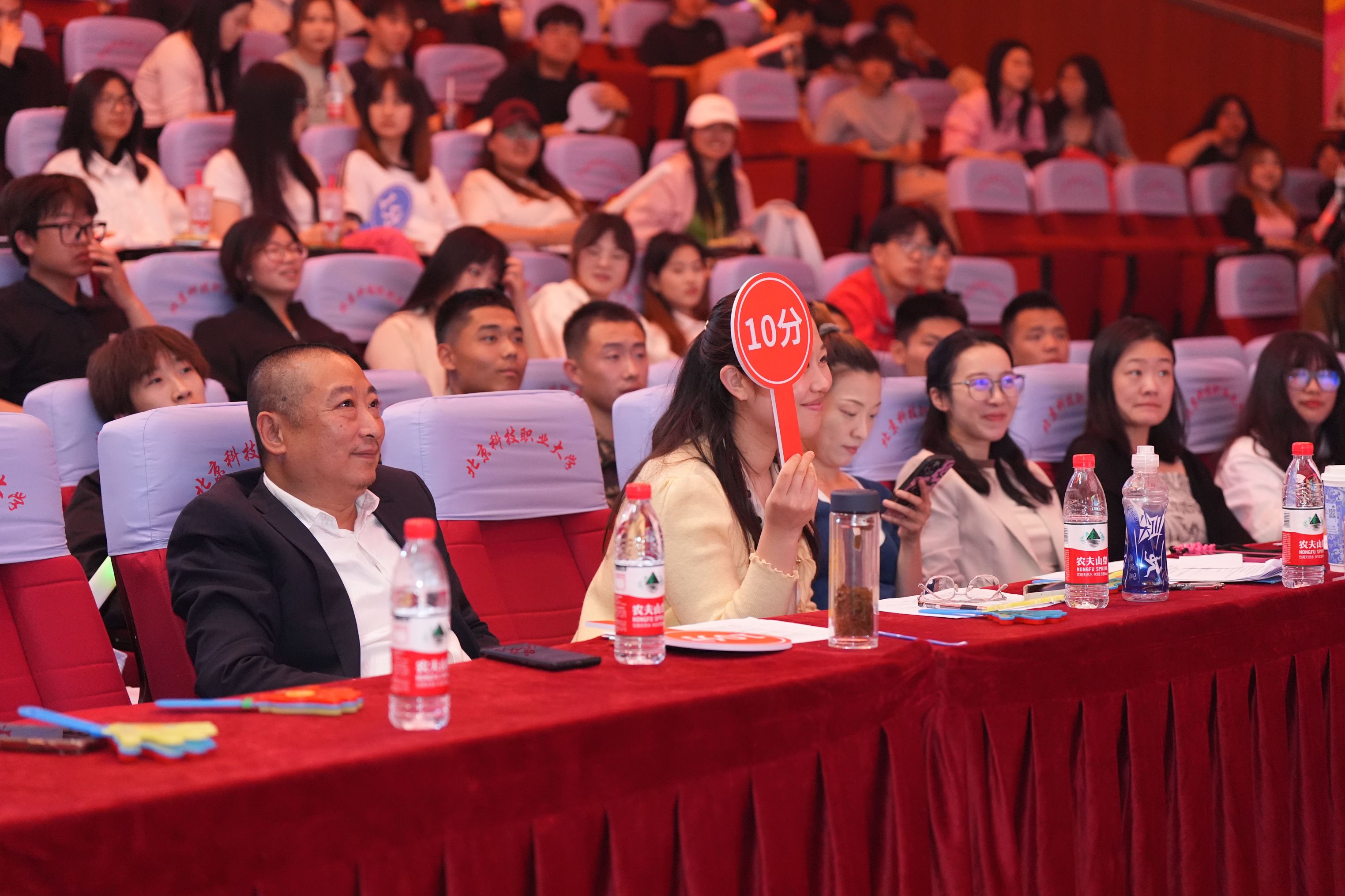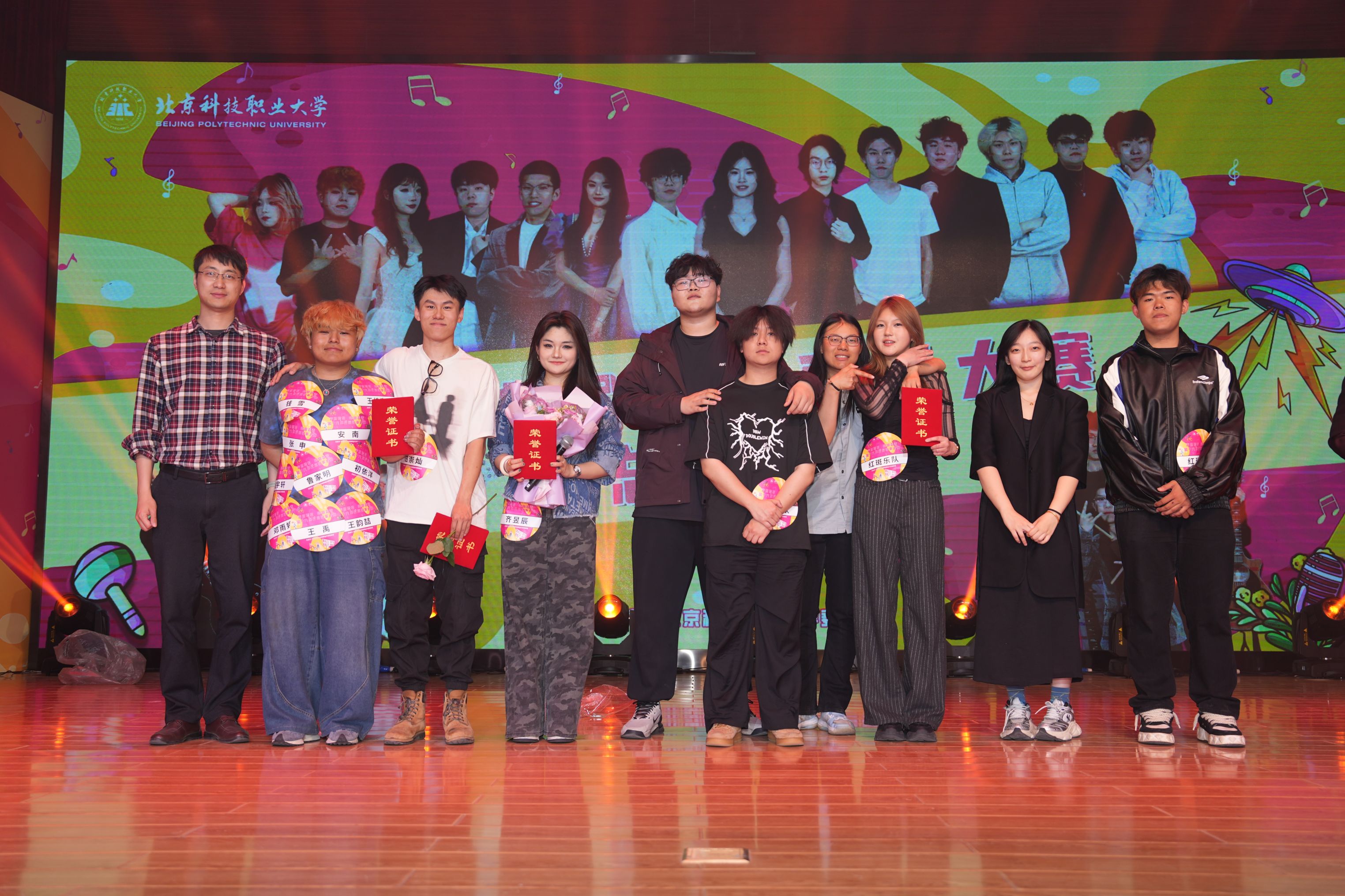 赛事评委由校团委大学生艺术团指导教师、艺术特长辅导员教师李博闻、陶源、刘艺萍等六位专业人士和来自八个学院的40名学生大众评审组成,现场共吸引近300名师生观赛。选手通过独唱、组合帮唱、乐队表演等多元形式,展现了北职大学子的文艺素养与精神风貌。