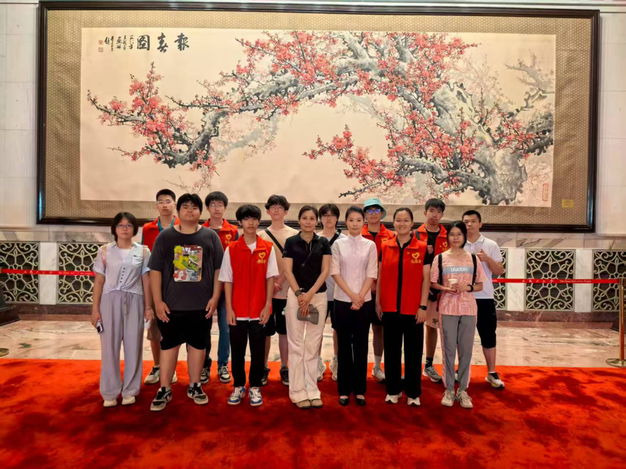 随后,实践队伍走进人民大会堂。在宴会厅,同学们从主灯模块化设计联想到芯片集成化思维;在地方厅,上海厅浮雕让人忆起抗战往事,广东厅规划图见证民众贡献,陕西厅砖雕感受力量与精准,四川厅竹编蕴含坚韧与担当,台湾厅壁画引发为两岸科技进步添砖加瓦的共鸣;新闻发布厅里的大屏幕和记者席,使同学们真切触摸到信息公开背后的时代脉搏,意识到核心技术自主可控的重要性。