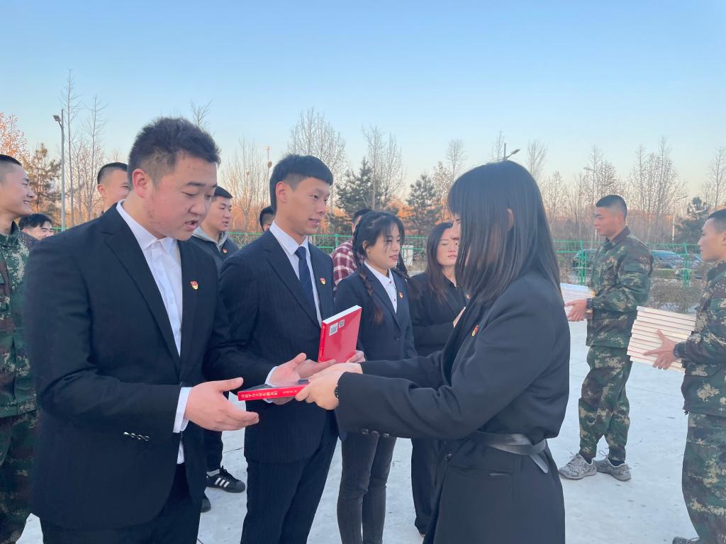 随后,支部的党员教师为新入党同学佩戴党徽,并赠予每人两本党史书籍。希望他们在理论学习中,牢记党员职责使命,不忘初心,永葆共产党人的政治本色。新发展的预备党员纷纷表示,要结合学习工作实际,自觉带头更加严格要求自己,做到全心全意为人民服务。