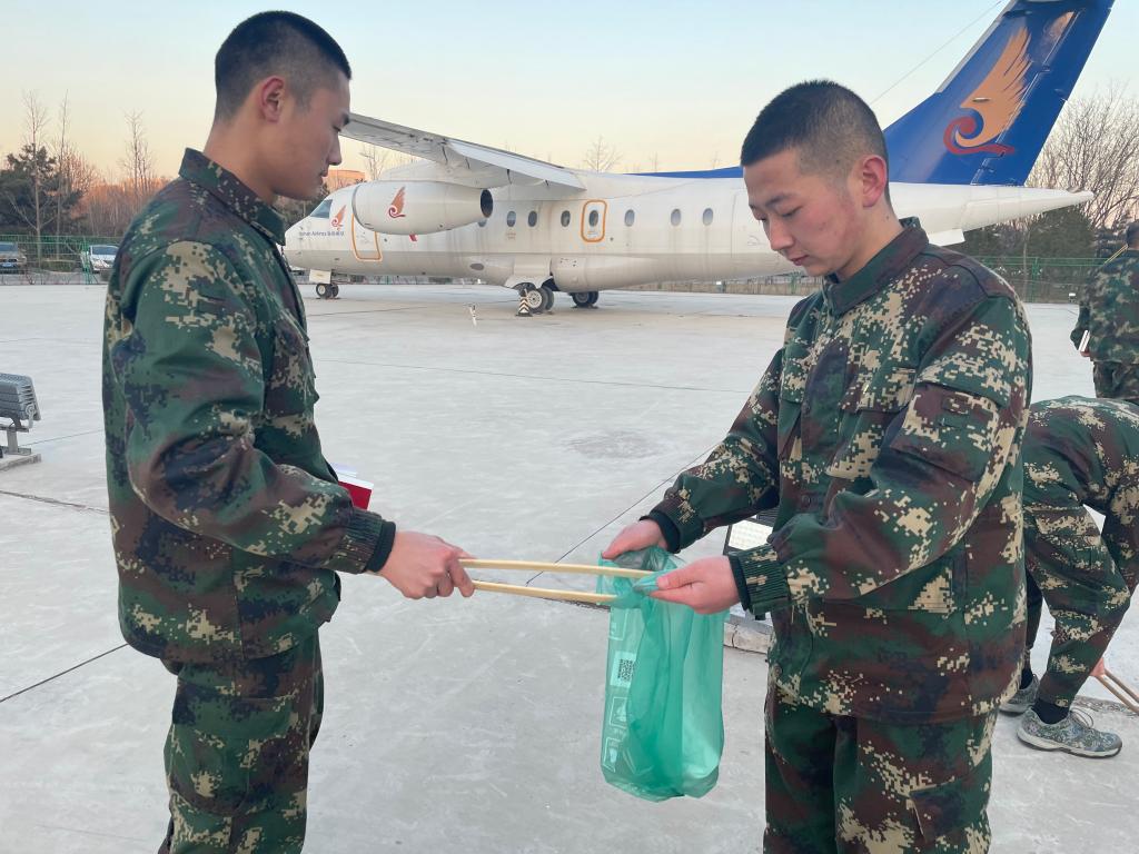 最后,由党员教师们带领大家拿着清洁工具,进行美化校园的活动。活动中同志们分工协作、密切配合,将飞机坪中的纸屑、塑料袋、生活垃圾等彻底清理干净,同时对展板外表多个“死角”区域进行擦拭清洁,对机坪地面缝隙进行彻底清扫。虽然天气十分寒冷,但丝毫没有影响大家参与劳动的热情,个个精神抖擞,干劲十足。