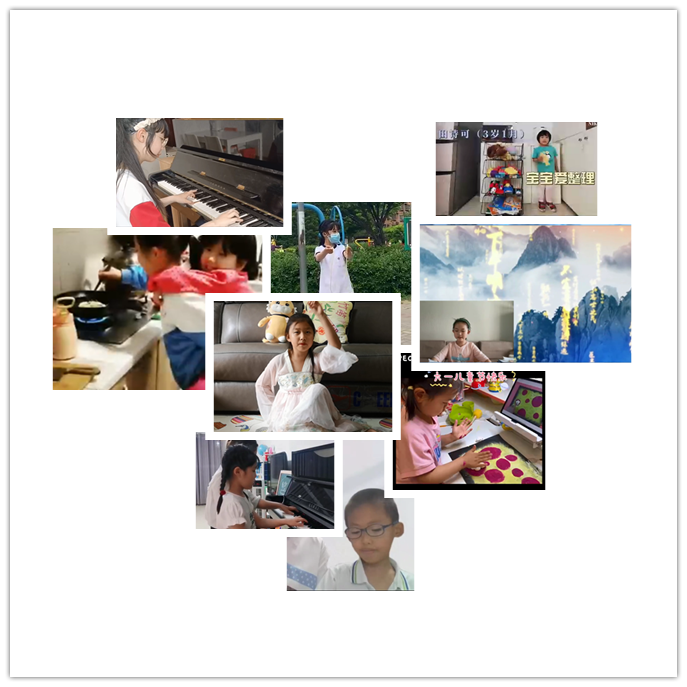 本次线上才艺活动展得到了教职工及家属、子女的大力支持。喜爱运动的羊羊透过短视频《我运动、我开心、我健康、我快乐》,分享着和父亲(曲鸣飞老师)骑车、比跳绳的快乐;周嘉轩和妈妈张丽荣一起跳绳,一起朗诵笠翁对韵节选。从2021年7月《关于进一步减轻义务教育阶段学生作业负担和校外培训负担的意见》由新华社全文公开。“双减”让教育回归学校,中小学丰富多彩第二课堂、选修课为孩子们学习和参与艺术活动提供了越来越多的机会,即使在疫情面前,孩子们也不忘发展自己的兴趣爱好。活动展上多才多艺的李玮老师和女儿蔺岚音小朋友现场直播表演了钢琴四手连弹《孤勇者》和抗疫主题绘画,王刘菲儿子的中国水彩画,包献文女儿郑馨怡小朋友朗诵的《出师表》,王雪娇女儿田诗可《宝宝爱整理》劳动场景等,一幅幅一帧帧不时给我们带来惊喜和快乐。
