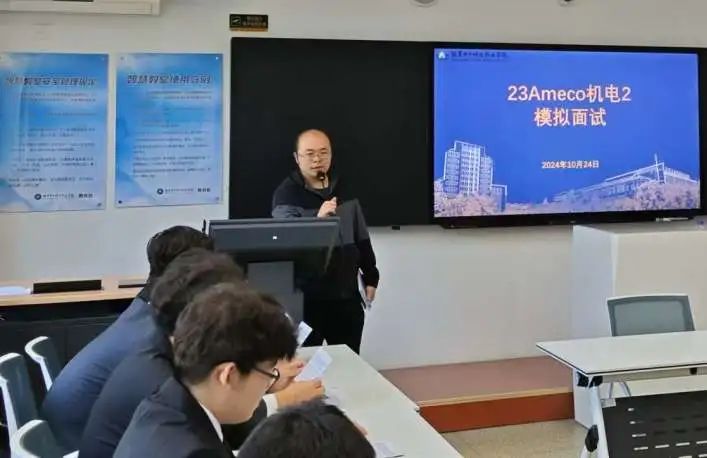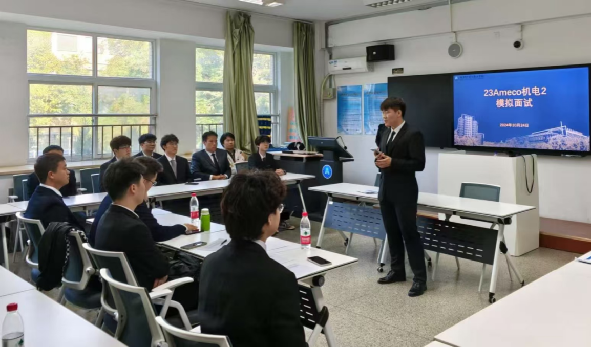 最后,23Ameco机电2班全体42名学生,分6人一批,依次进行模拟面试。面试由自我介绍和半结构化问答两个环节组成。面试官也针对每位同学的表现进行了详细点评,指出面试中存在的问题,并提出切实的改进建议。