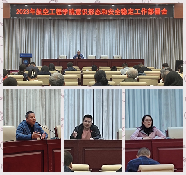 4月21日下午,航空工程学院组织全体教职工在机电报告厅召开航空工程学院意识形态和安全稳定工作部署会。党总支书记陶云明主持会议。