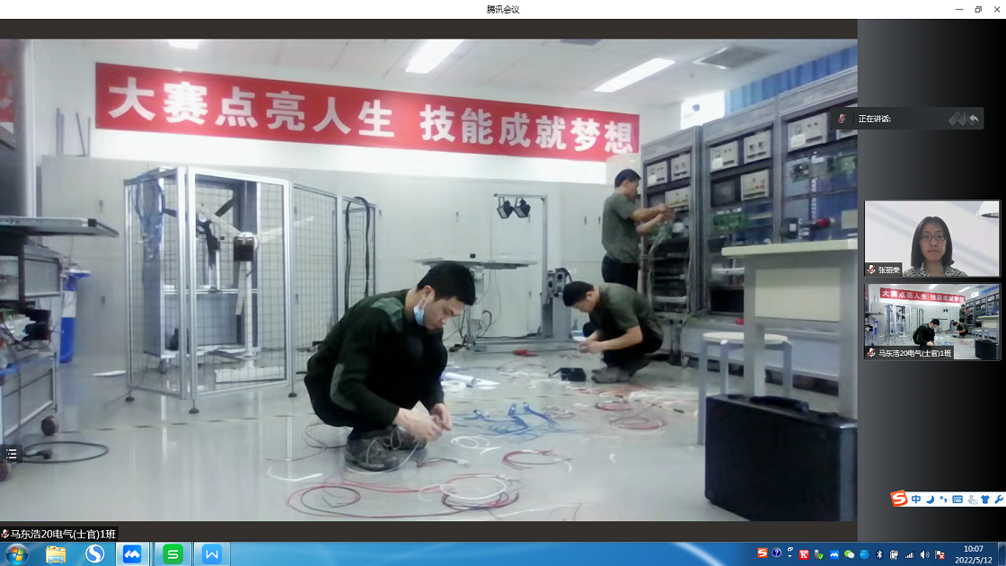 “机器视觉系统应用”赛项,采用线上线下结合方式进行训练。线上,指导老师利用腾讯会议,对于一些新的知识和技能点,进行讲授和操作演示;线下,学生在多媒体教室和实训室进行随堂练习训练,通过开启视频,指导老师能实时看到学生的训练,对发现的问题给予督促引导,任务完成后指导老师及时进行检查、点评。