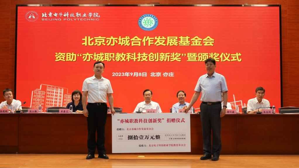 绳立成感谢学校对开发区工作的大力支持。他指出,北京亦城合作发展基金会特别针对北京电子科技职业学院及其教育基金会合作设立“亦城职教科技创新奖”,旨在助力学校不断加强“高层次、高质量、高技能、高水平”领军职教人才培养,从而不断提升开发区和学校教育科技发展水平,让学校更多的教师在开发区更有成就感、幸福感和获得感。他表示,亦城基金会将建立长效机制,持续支持和帮助学校的各项事业发展,以关注教师们的成长为己任,与全校教师一起努力把学校建成全国职业教育战线上的排头兵和领头雁,成为开发区内办高职的典范。