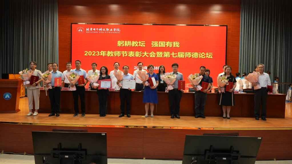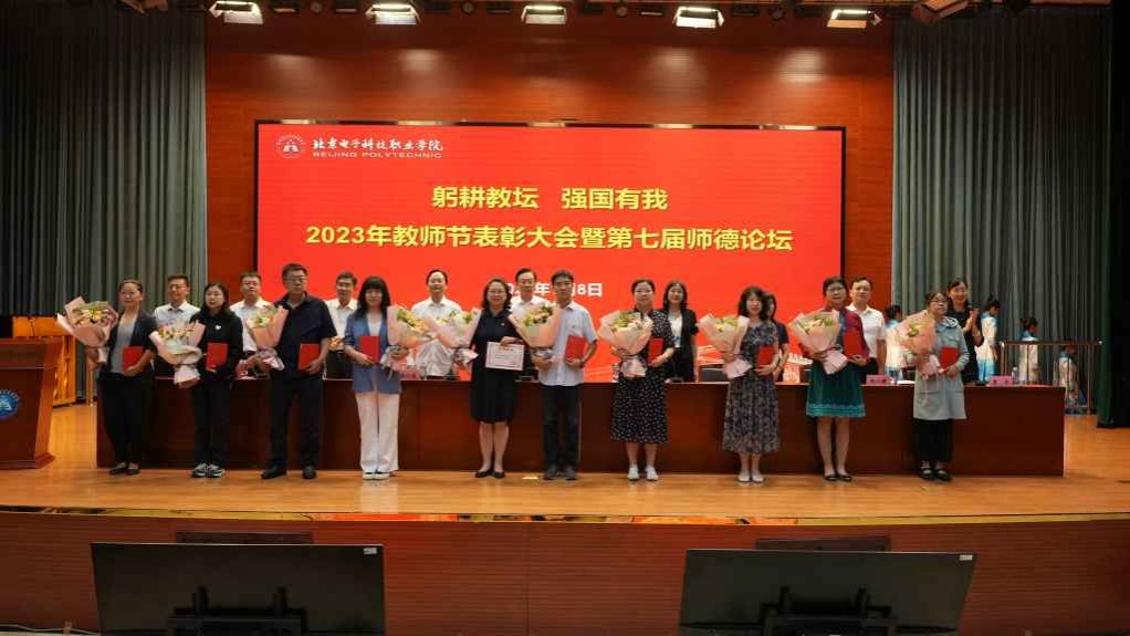9月8日下午,学校2023年“躬耕教坛 强国有我”教师节表彰大会暨第七届师德论坛隆重举行,北京经济技术开发区管委会原副主任、北京亦城合作发展基金会党支部书记绳立成,执行秘书长王汝德、项目部副部长王乃荣出席会议。学校领导、处级干部、受表彰人员代表、教职工代表、学生代表在图书馆主会场参会,其他教职工在分会场参会,共同庆祝第39个教师节的到来。会议由学校党委副书记王玮主持。