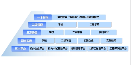 实施职教企业实践新模式,实现校企共育“双师型”教师。把思政教育融入企业实践过程,采用“一个目标、二级管理、三方协助、四方实施、五个平台” 模式加强教师企业实践工作,提升教师实践教学能力。北京市教委认定学校为教师到企业实践优秀案例学校。
