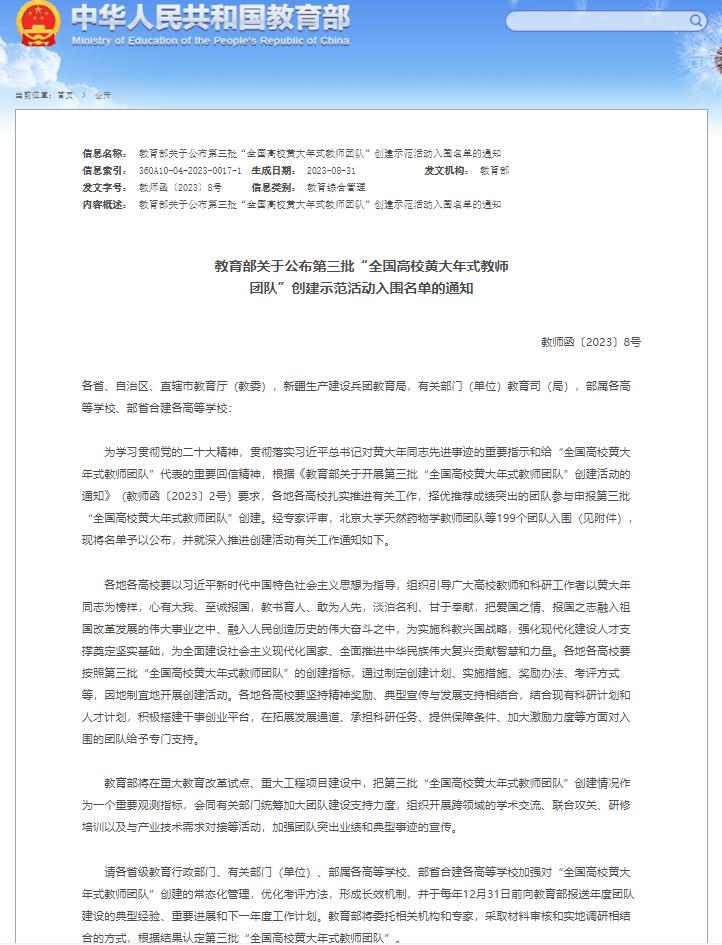 同时,他们紧扣立德树人目标,弘扬教育家精神、工匠精神,坚持厚德精技,加强师德建设,获省部级师德先锋、教学名师等各类荣誉36人次。