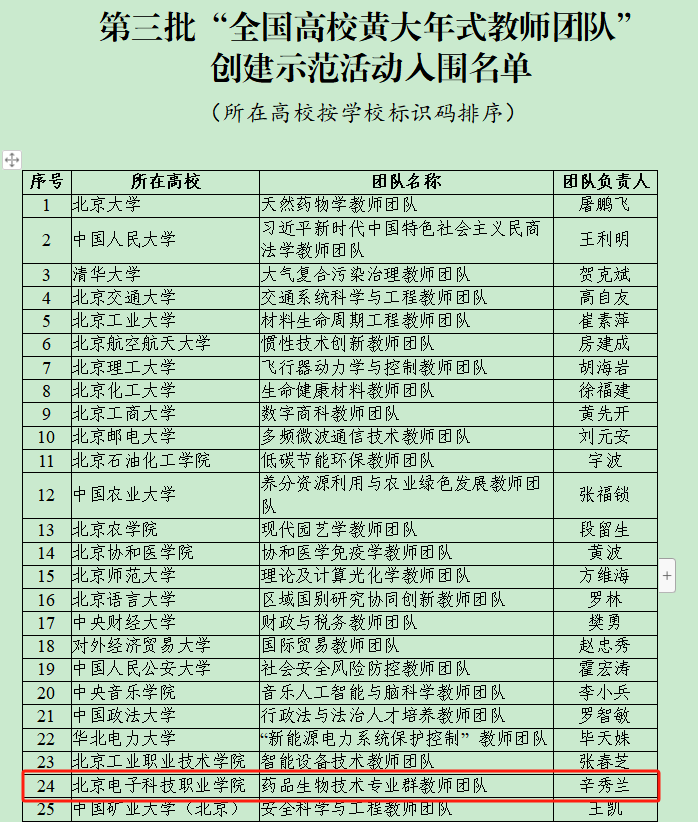 北京电子科技职业学院生物工程学院广大教师以赤诚之心、奉献之心、仁爱之心投身教育事业,凭借卓越的教育成果,深厚的科研实力和高度的社会责任感,荣获2024年度全国教育系统先进集体荣誉,树立了职业教育的新标杆,为国家医药健康战略新兴产业的发展注入了强劲动力。接下来,让我们共同聚焦生物工程学院,探寻其如何在教书育人的伟大事业中书写下一幕幕动人篇章。