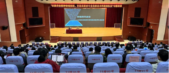 为深入贯彻落实新时代教育发展要求,着力打造高素质专业化职业本科教师队伍,4月18日下午在图书馆报告厅,教师发展中心举办的“以教育家精神铸魂强师,打造高素质专业化职业本科教师队伍”专题培训正式开班。培训为期两个月,内容包含“师德师风及警示教育”模块、“中央八项规定精神解读”模块、“以教育家精神引领高素质教师队伍建设”模块,共20学时。