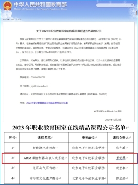 2019年课程升级为《ARM微控制器与嵌入式系统》,开始进行课程资源的建设,并在爱课程SPOC平台开课,获评校级精品在线课程。2020年课程在学银在线全新上线,面向社会免费开放。2022年课程被评为北京市职业教育在线精品课程。2024年被评为职业教育国家在线精品课。