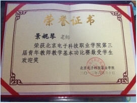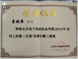 2017年使用新的课程框架,继续精进教学能力。参加北京市信息化教学比赛荣获二等奖,北京市教学能力大赛荣获二等奖,2018年被评为北京市青年骨干教师。2016、2017、2018年三次被评为北京电子科技职业学院“我心目中的好老师”。