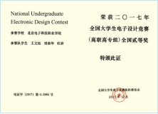 2017年指导学生参加全国大学生电子设计竞赛荣获二等奖。2018年指导学生完成“基于Cortex-M0的微信智能开关系统”,参加全国挑战杯创新创业大赛荣获一等奖。在指导创新大赛以及电子设计大赛的过程中,积累更多的项目经验,为课程注入了新的活力。
