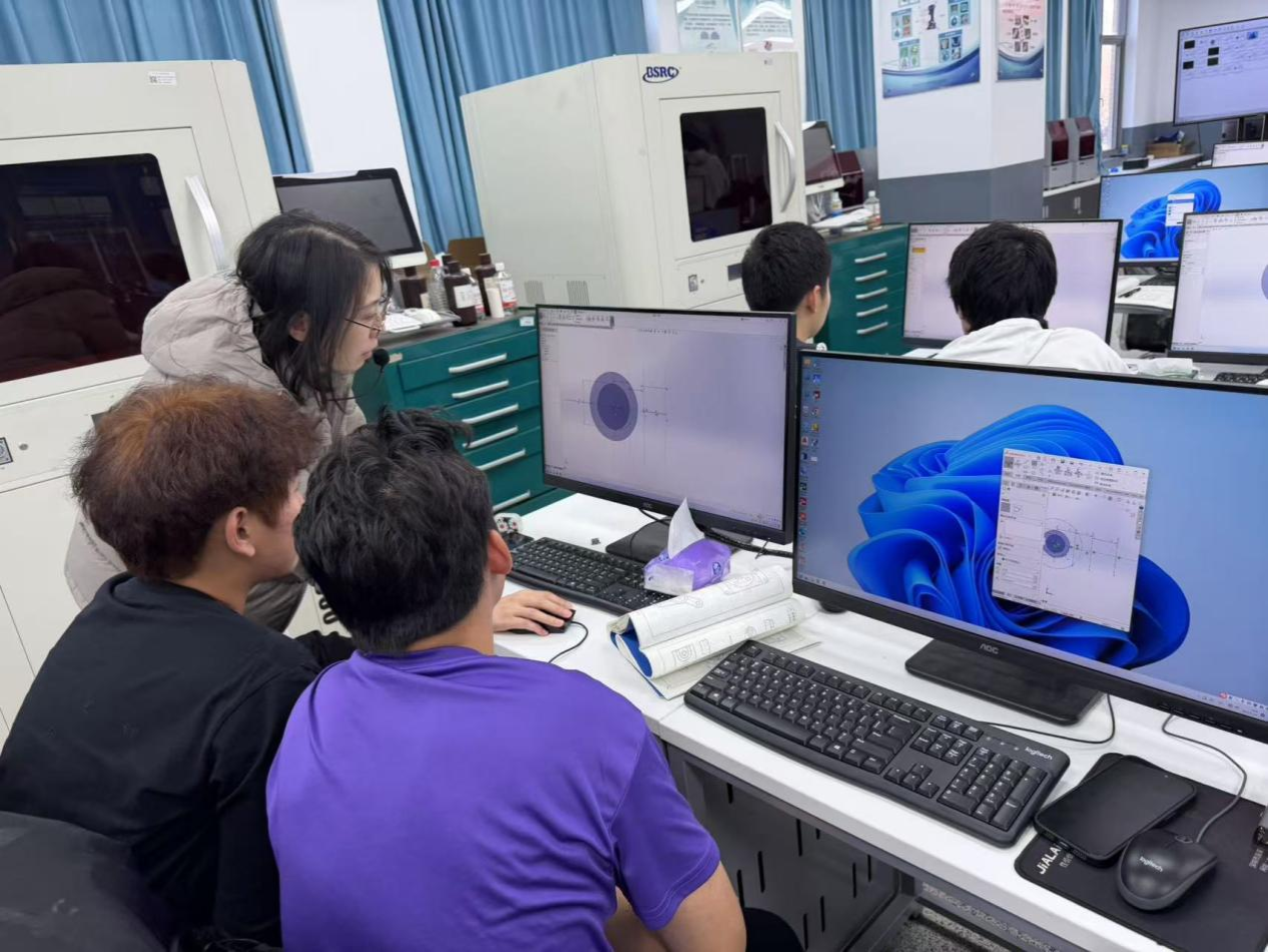 接触到工程制图后,2025级航空工程学院王悠然、郭丛宾、孙琪对机械设计展现出极大的兴趣。在工程训练中心张亚娟老师的鼓励下,他们参与到“智眸水刃具备AI三维识别能力的全域高压水清洗系统”项目中,深入学习自动化控制系统相关知识,将课堂所学,应用到高效、环保、智能清洗设备的设计制造中,并在第九届中华职业教育创新创业大赛本科组一等奖。