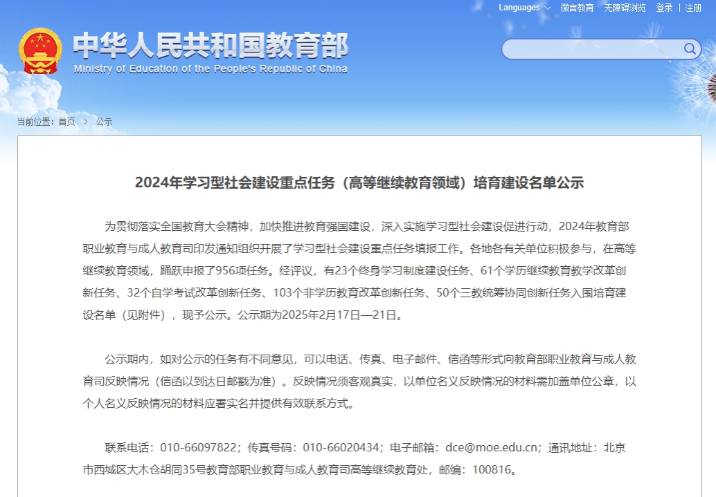 2024年教育部职业教育与成人教育司印发通知并组织开展了学习型社会建设重点任务填报工作。学校各二级学院积极参与并组织申报工作。此次项目的成功申报,彰显了学校社会服务的水平和高等继续教育领域科研创新的发展潜力。下一步,学校将指导和支持两个二级学院高质量完成学习型社会建设重点任务,为推进学习型社会建设,助力教育强国建设作出更大贡献。