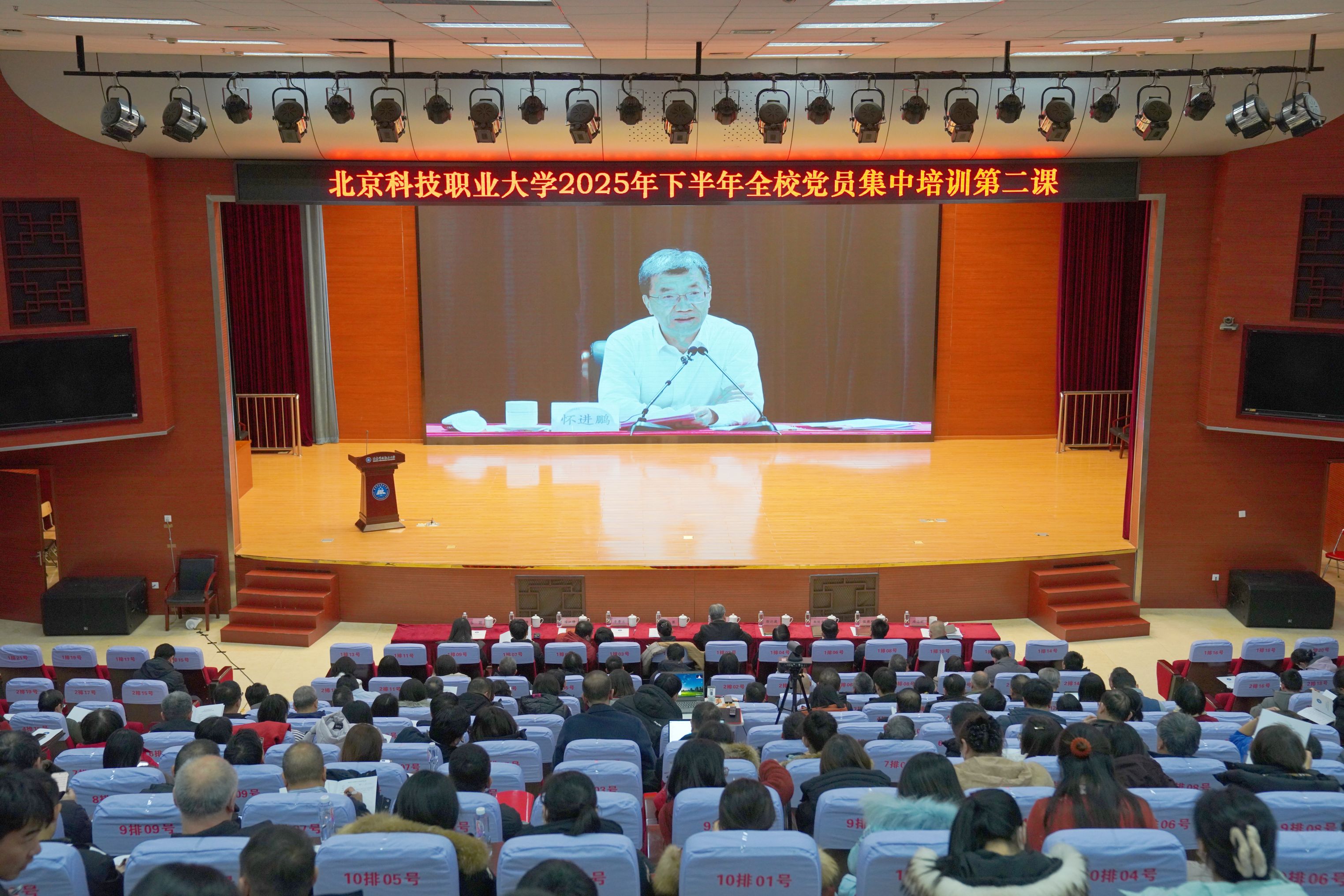 12月12日下午,学校举办2025年下半年全校党员集中培训第二课,集体观看教育部党组书记、部长怀进鹏主讲的“深入学习贯彻习近平总书记关于教育的重要论述 以教育强国支撑引领中国式现代化”专题授课视频,部分在京兄弟高校代表到校观摩。