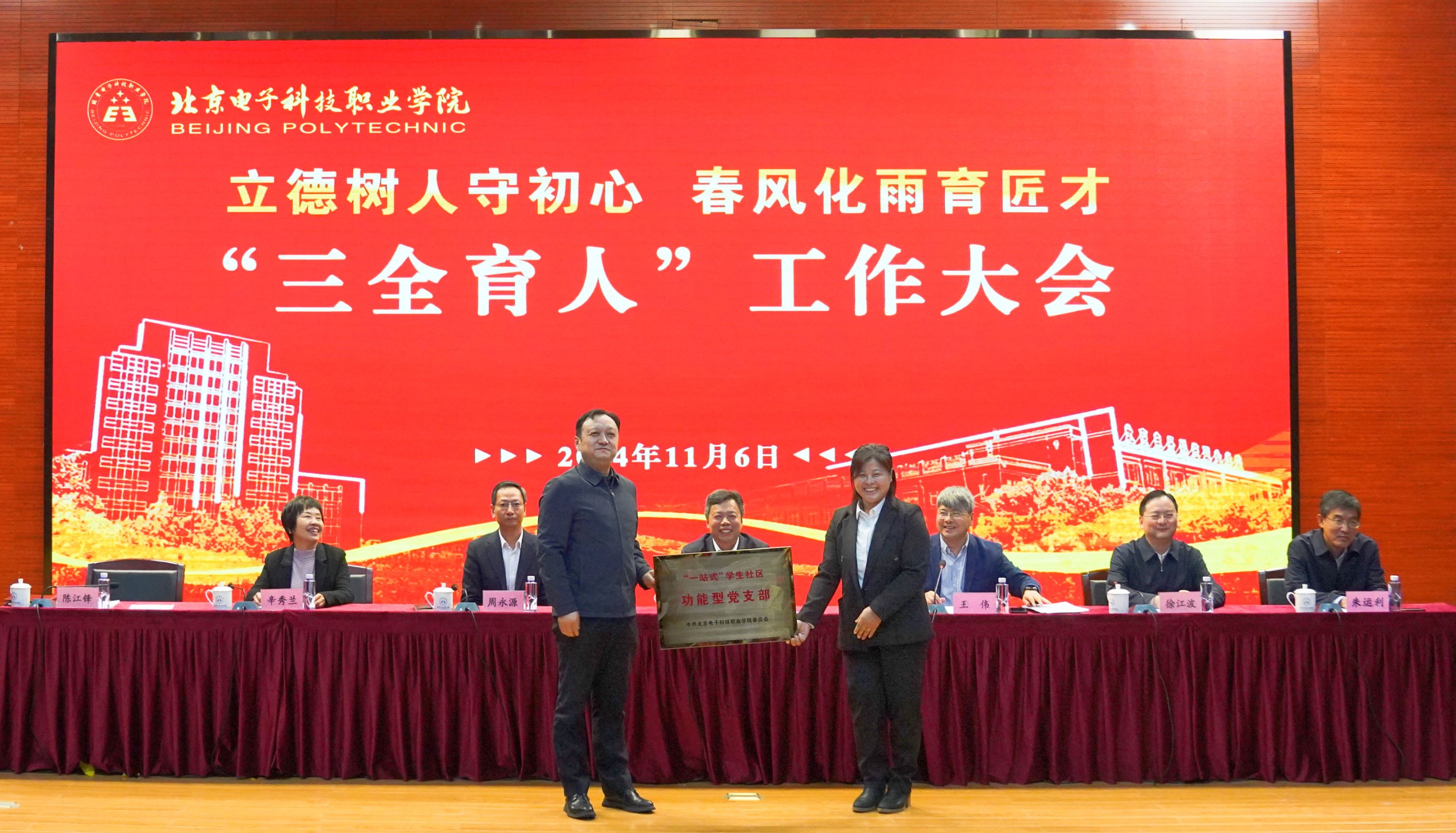为深入贯彻党的二十大精神、二十届三中全会精神和全国教育大会精神,不断加强和改进新时代学校思想政治教育,加快建设学校高质量思想政治工作体系,努力构筑学校立德树人新格局,2024年11月6日,学校召开“三全育人”工作大会。学校领导班子成员、全体处级干部、全体辅导员、班主任代表、专任教师代表、管理服务领域教师代表、企业与政府机构代表、关工委老同志代表、学生代表等参加会议。