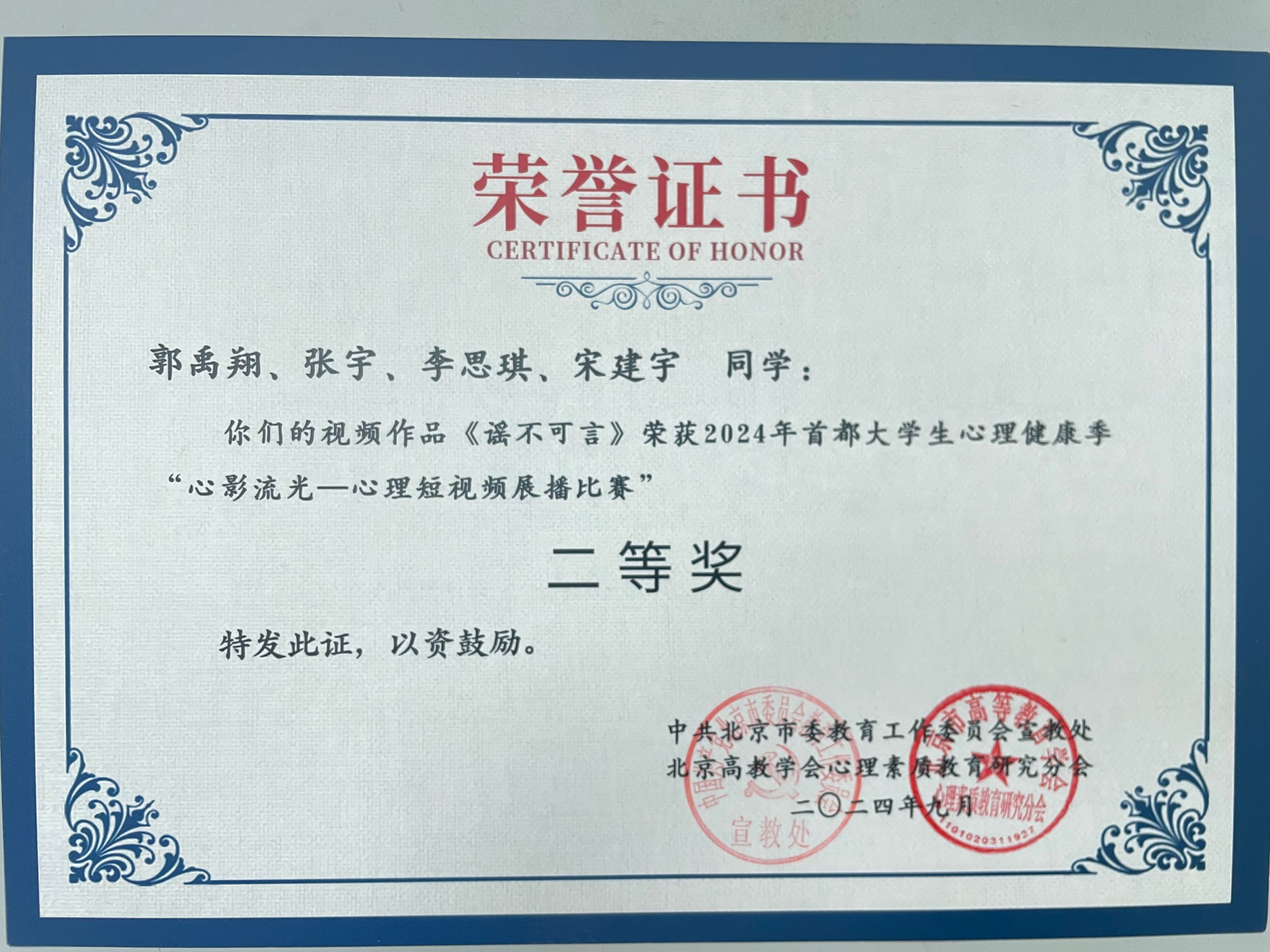 10月25日,2024年首都大学生心理健康季总结表彰会在中国地质大学(北京)举行,BEAT365荣获“优秀组织奖”,是获得该奖项的唯一一所高职院校。