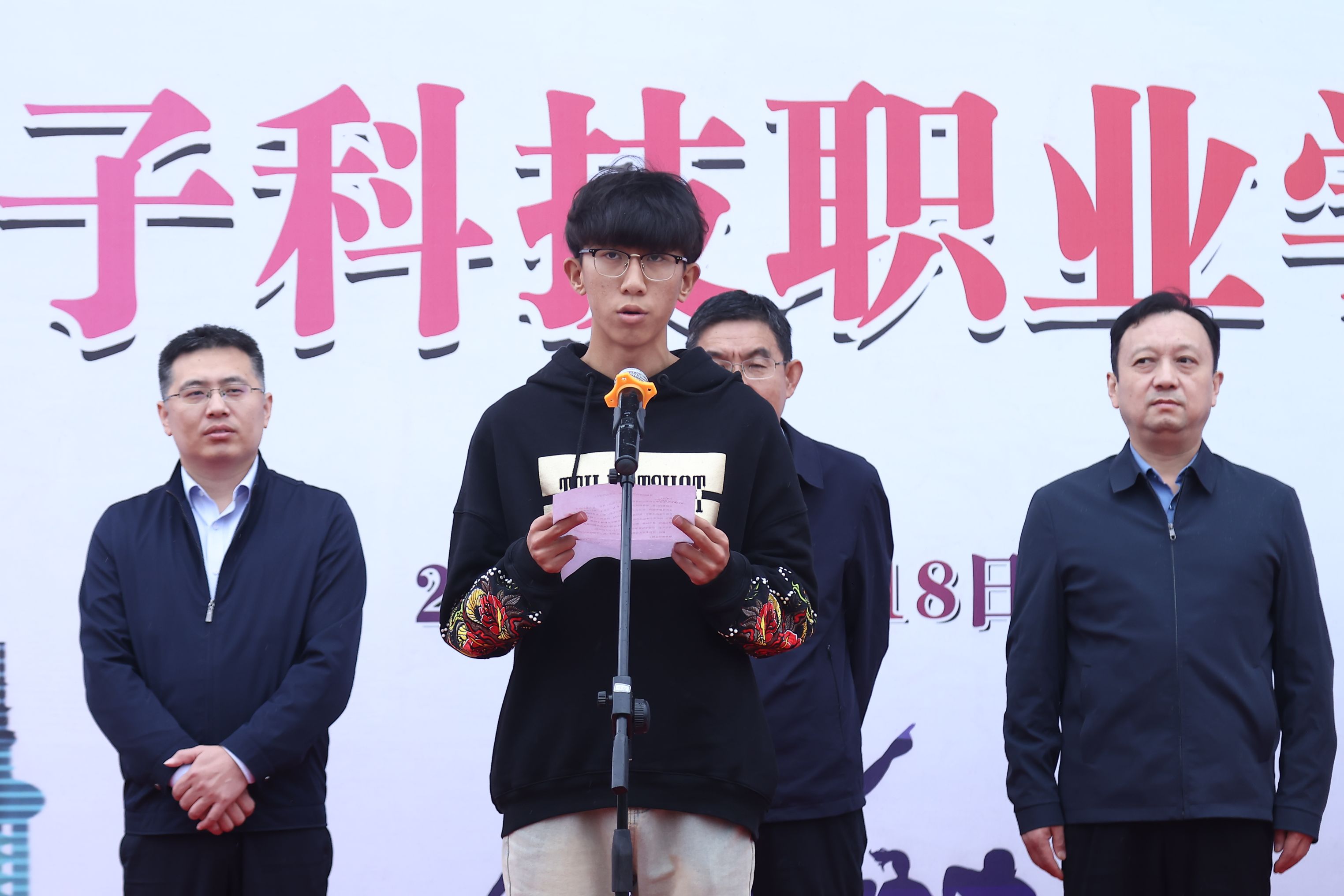 集成电路(人工智能)学院张祯垚代表运动员发言,表示将以饱满的热情、昂扬的斗志投入到各项竞赛中,用速度与激情书写新一代电科学子的风貌。