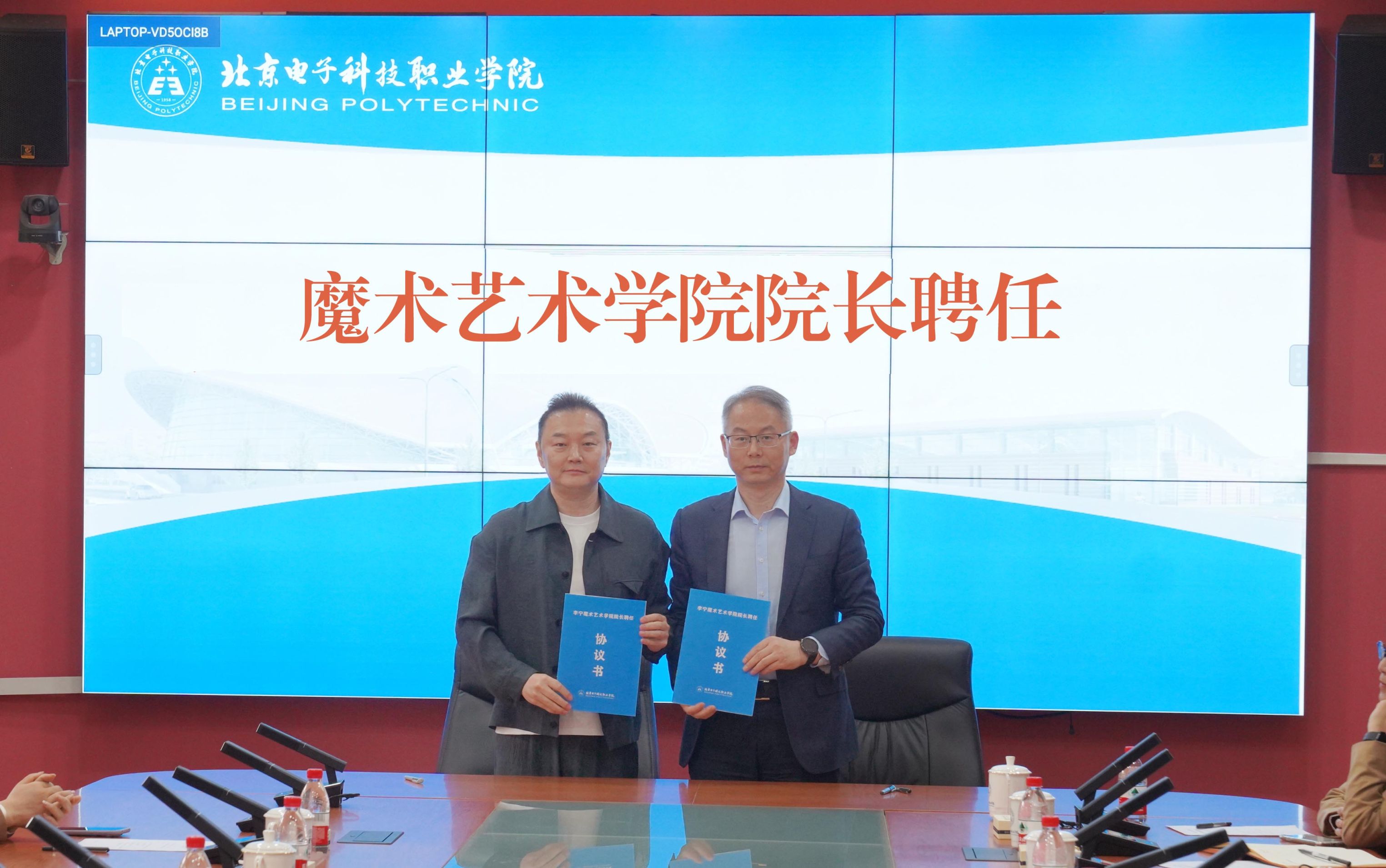 学校党委教师工作部部长、人事处处长、教师发展中心主任冯志新代表学校与李宁大师签订《魔术艺术学院院长聘任协议书》。