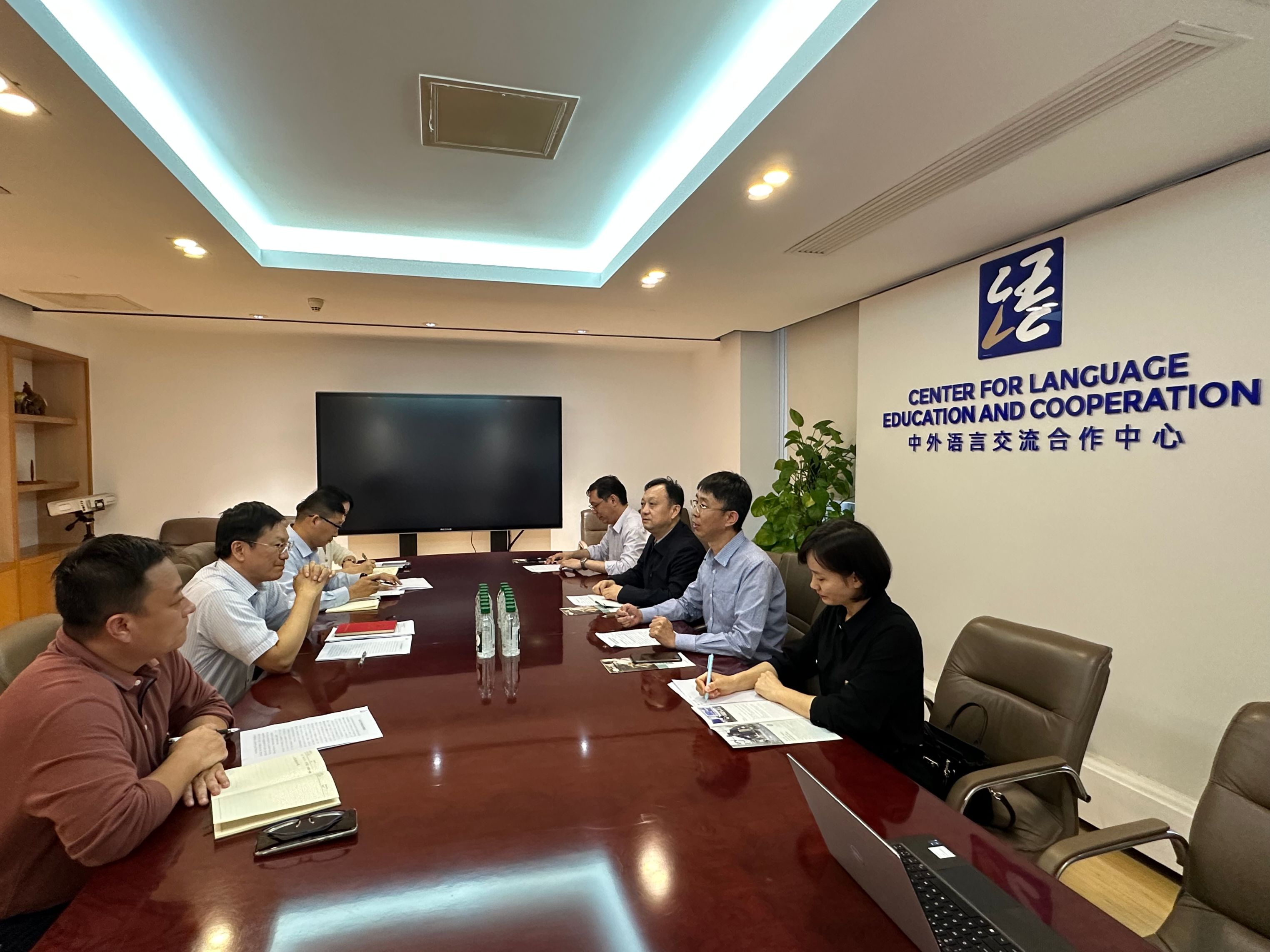 在交流中,陈江锋就学校近期取得的成果作了简要介绍,就“中文+职业技能”相关项目的进展情况作了说明。白雪飞就中信戴卡有限公司的发展情况和全球布局,特别是摩洛哥分公司的发展情况作了介绍。胡志平表示,很高兴看到校企双方能够对合作事宜达成一致,期待未来语合中心、电科院、中信戴卡三方能够在“中文+职业技能”的平台上落实更多“小而美”的惠民项目,围绕中文语言培养、中国文化的国际理解、技术技能的培训与传授以及面向海外当地社区的中文教学等内容,服务中资企业的海外发展,为“一带一路”倡议贡献力量。随后三方就项目开发、教师外派、企业发展等方面进行了细致沟通。