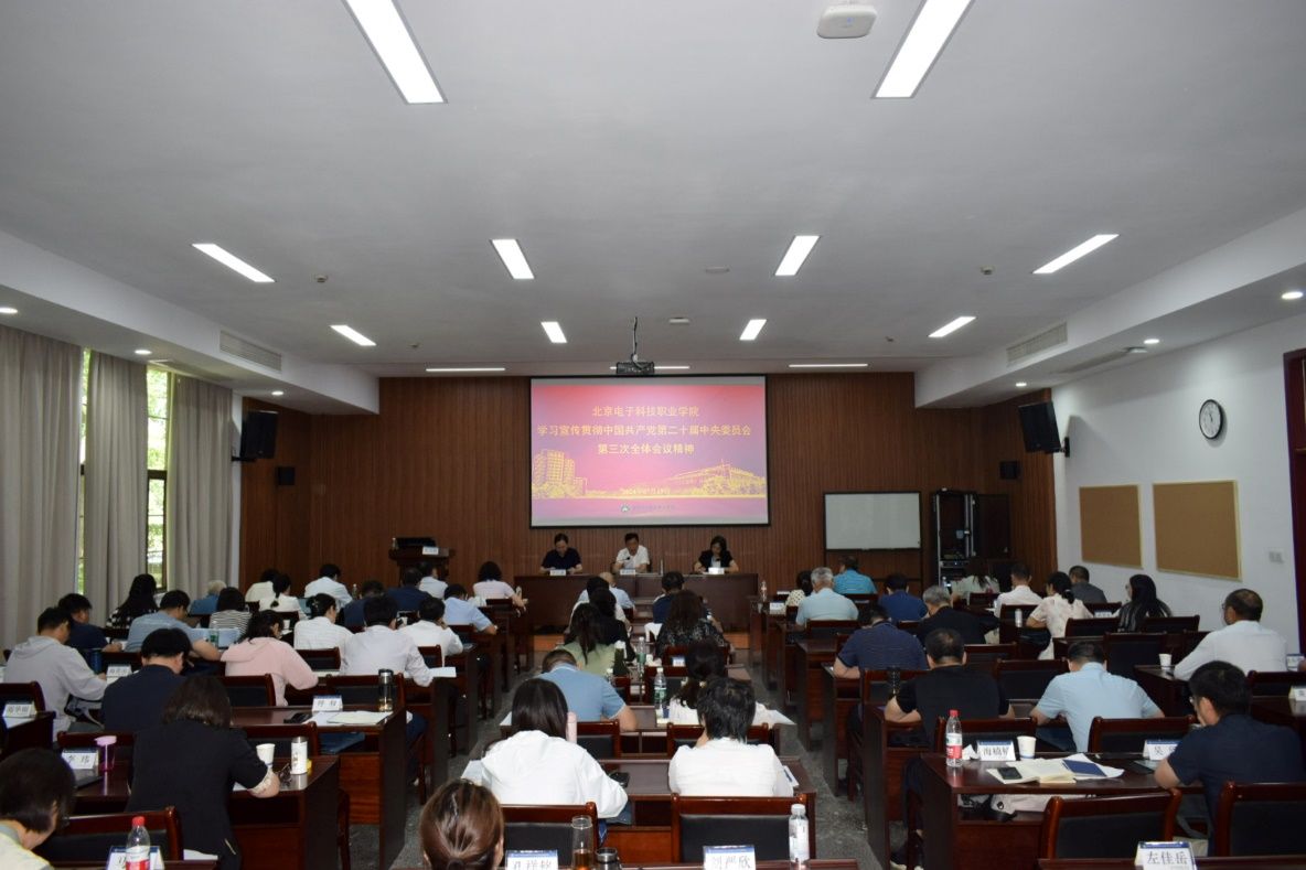 张启鸿强调,学习宣传贯彻党的二十届三中全会精神,是当前和今后一个时期全校上下的重大政治任务。一是全校师生要不断增强坚定拥护“两个确立”、坚决做到“两个维护”的政治自觉、思想自觉、行动自觉,要深刻认识全会重大意义,准确把握重点学习内容,完整理解改革总目标,将改革创新的精神和干事创业的劲头贯穿“建高升本”“升本建高”全过程各领域,从政治高度切实把全会重大改革部署转化为推动学校高质量发展的实际成效。二是要特别关注此次会议在教育、科技、人才三位一体方面的新部署、新要求,把学习贯彻党的二十届三中全会精神和学校培养担当民族复兴大任的时代新人任务结合起来,探索建立以科技发展、国家战略需求为牵引的人才培养模式,着力培养造就卓越工程师、大国工匠、高技能人才,以创新培育“新质劳动者”提升服务新时代首都发展能力。三是要坚守“为党育人、为国育才”的初心使命,坚决扛起北京市委对学校提出的“当标杆、作示范、走在前、做表率”重大政治嘱托,努力在建设“首善标准、中国特色、世界一流”高水平技能型大学的道路上、在全面建设社会主义现代化国家新征程中勇当开路先锋、争当事业闯将,为推进中国式现代化贡献电科力量。