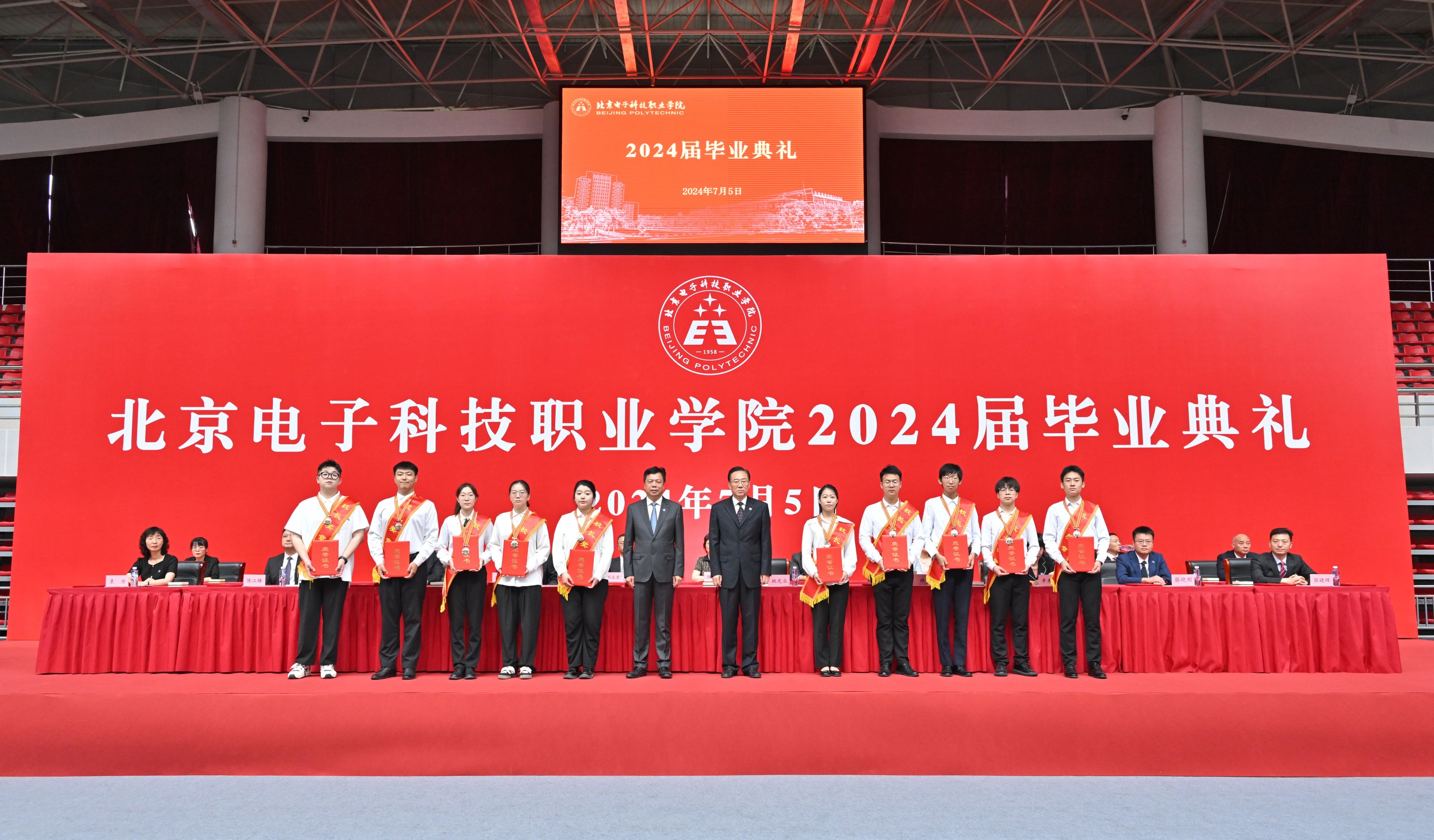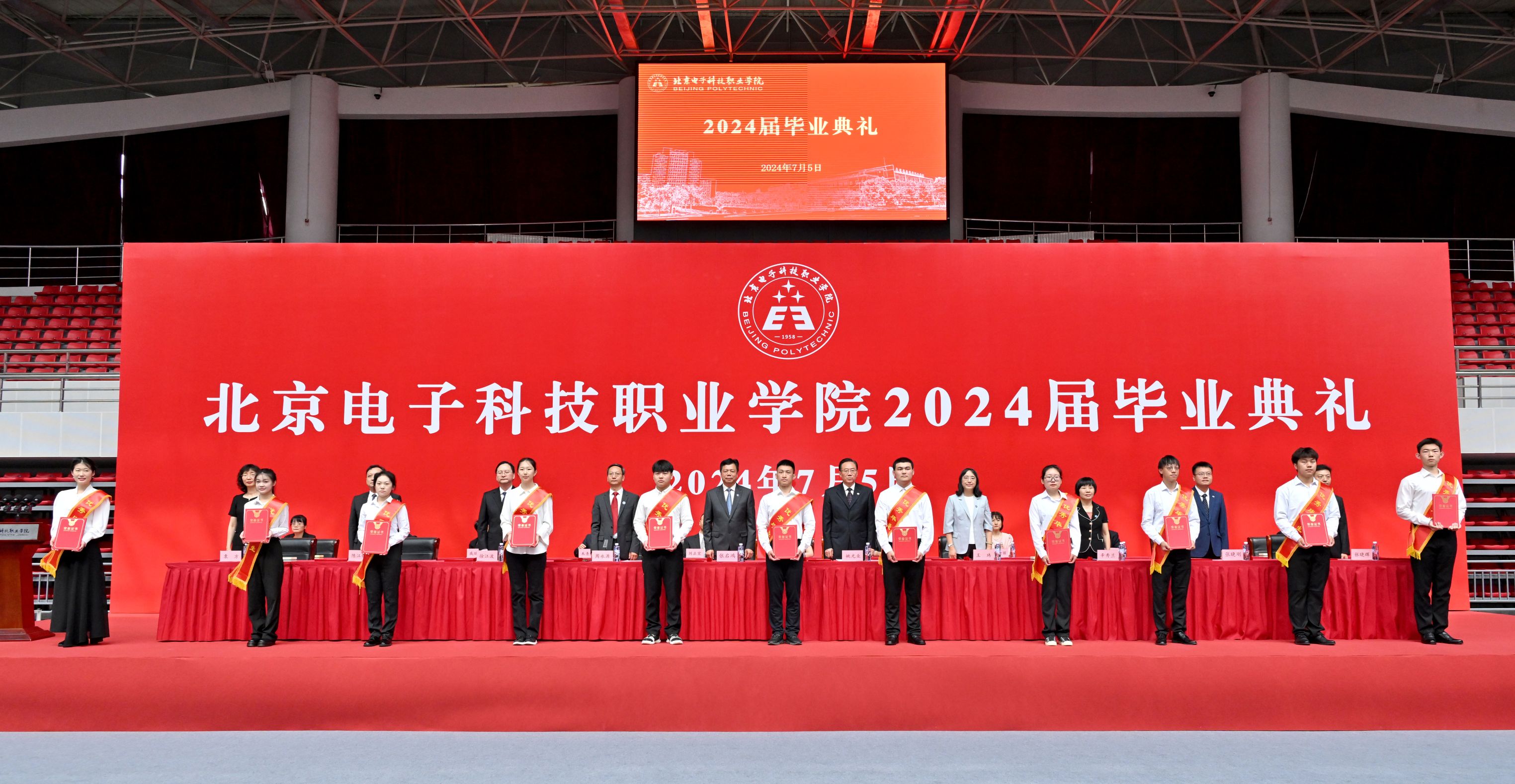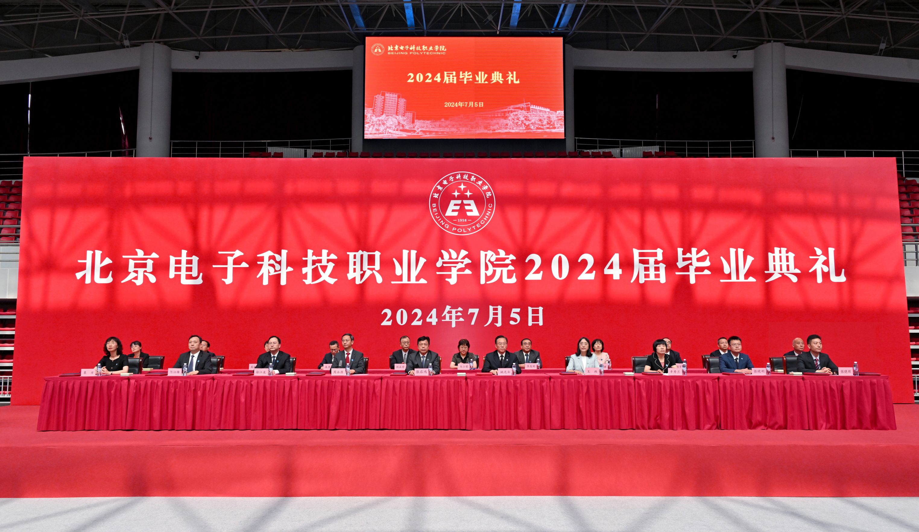 缘聚电科,求实创新,志存高远,逐梦新起点;立志天下,厚德重艺,砥砺奋进,扬帆新征程。7月5日,2024届学生毕业典礼在学校体育馆隆重举行,校领导、全体中层干部、辅导员、毕业班班主任及全体毕业生,用一次盛大的欢聚,共同庆祝2024届毕业生圆满完成学业、开启职业新篇章。党委书记张启鸿出席毕业典礼,党委副书记、院长姚光业发表毕业致辞,副院长陈江锋宣读毕业决定,副院长辛秀兰宣读优秀毕业生名单,副书记王玮宣读“校长奖章”名单,副书记周永源主持毕业典礼。