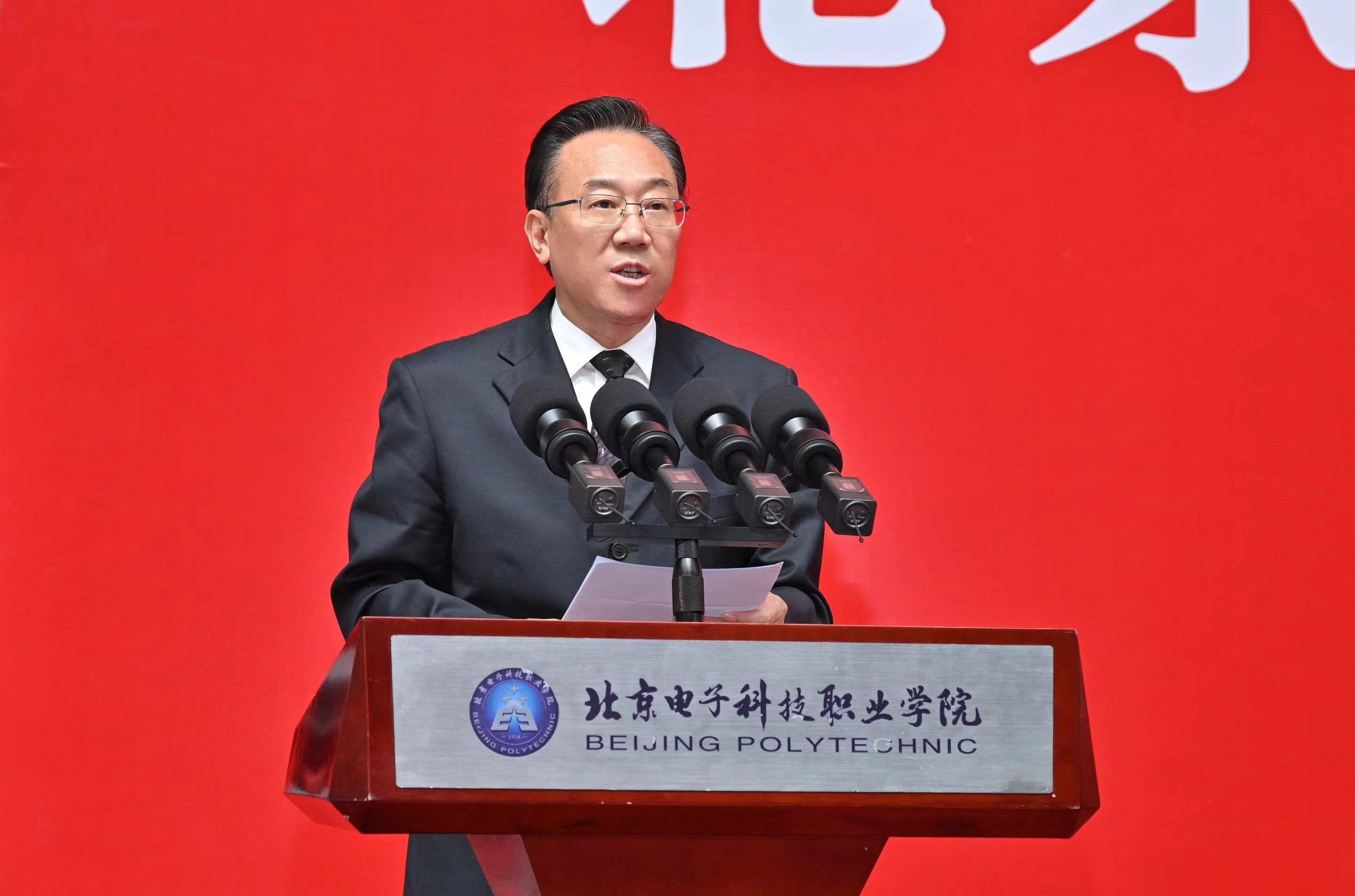 学校校友、北京市技术能手、清华大学基础工业训练中心实习指导教师王佐受邀参加毕业典礼并发言,他鼓励毕业生胸怀技能报国之志,踏浪而歌,驭光前行,在扎实苦干和砥砺奋斗中品尝成功的甘甜,以电科校友的身份携手并进、勇往直前。