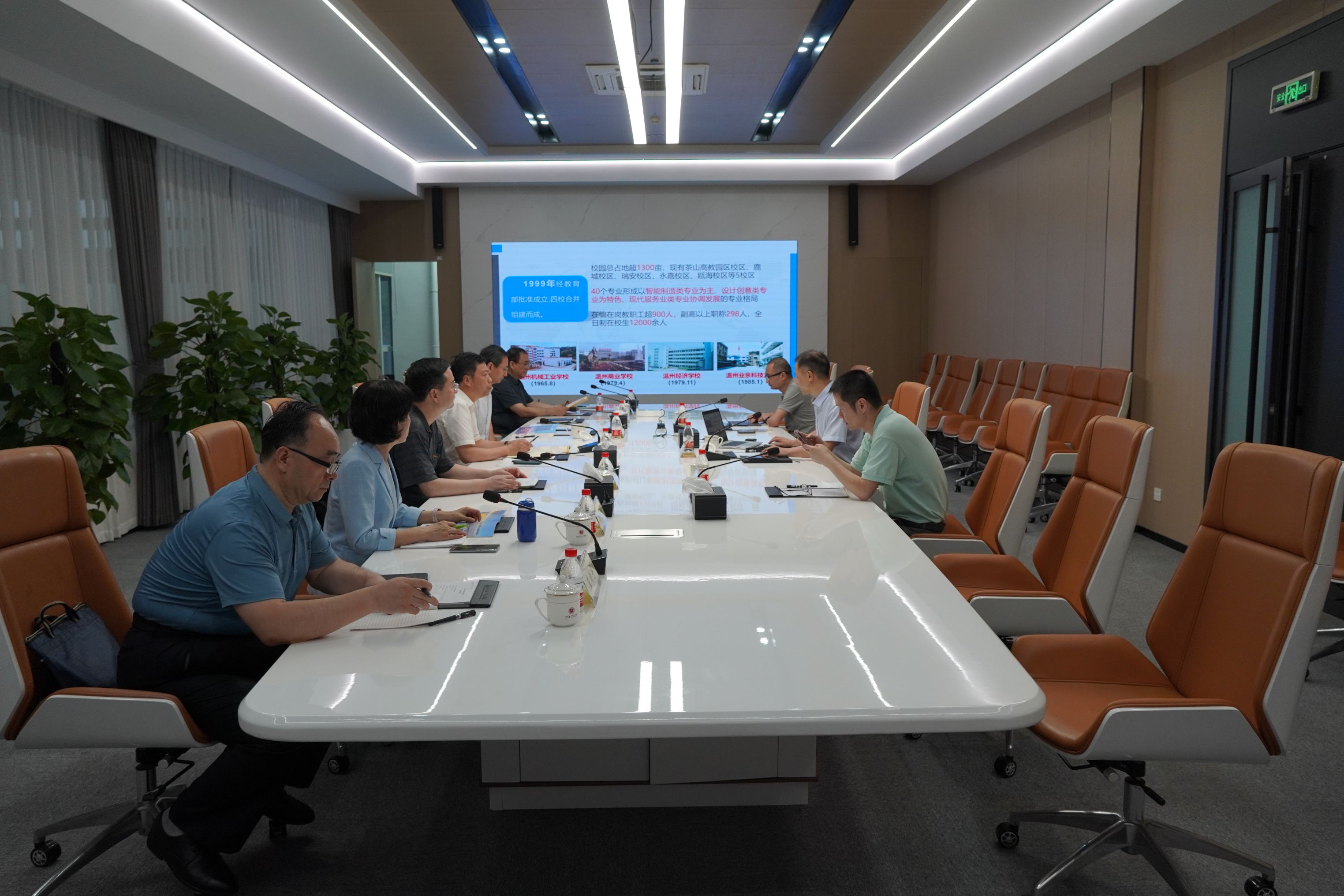 在温州职业技术学院,党委书记方益权陪同张启鸿一行参观了智能制造学院、建筑工程学院、人工智能学院实训基地,以及马克思主义学院思政实践研修基地和数智实训大楼。座谈会上,方益权详细介绍了温州职业技术学院“链接融合、共荣共生”的办学理念和高职教育“温州模式”的办学特色。双方就校企合作、科研工作、分配制度改革、专业建设等进行了深入交流。