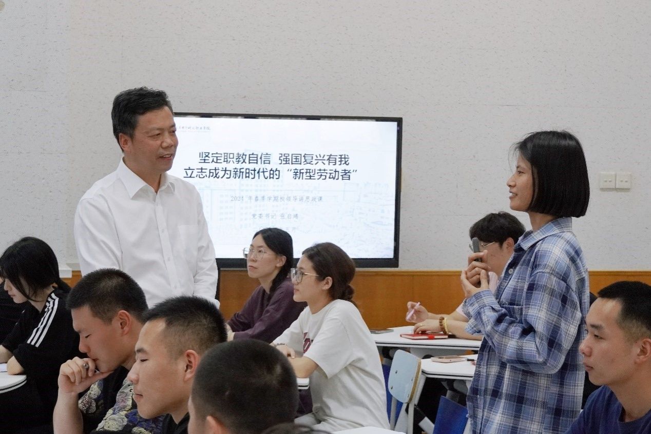 为深入学习贯彻习近平新时代中国特色社会主义思想,全面落实立德树人根本任务,厚植家国情怀,培育工匠精神,5月15日至29日,学校领导班子分别走进各自所联系的二级学院,采用实践教学与课堂教学相结合的形式为学生们讲授形势与政策课,进一步增强思政课的体验感、针对性和吸引力,让思政课“活起来”。