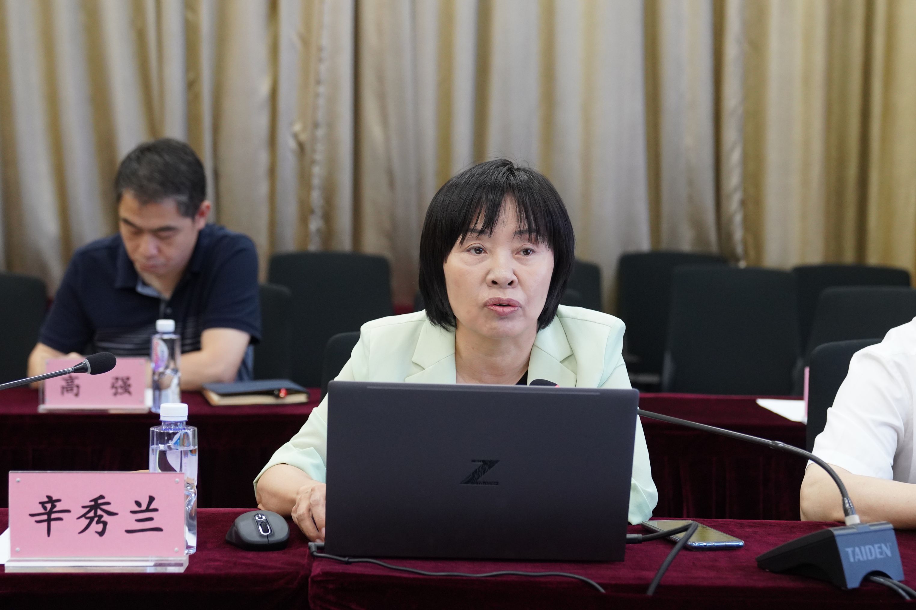 辛秀兰在会上详细介绍了学校产教融合的发展情况。