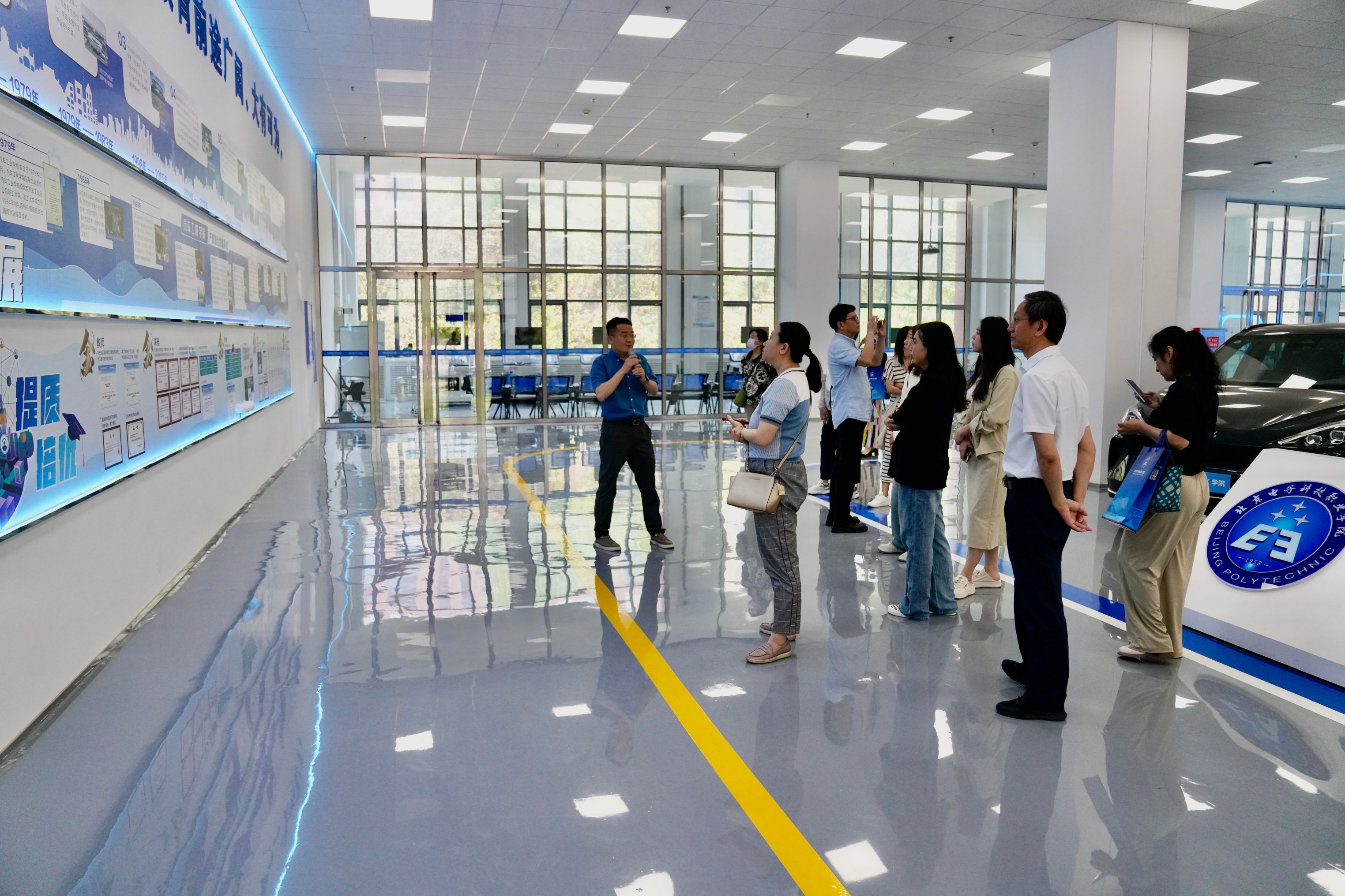 座谈会前,与会人员一同参观了学校党建思政教育基地、集成电路设计与测试中试基地、智能网联汽车产业学院。