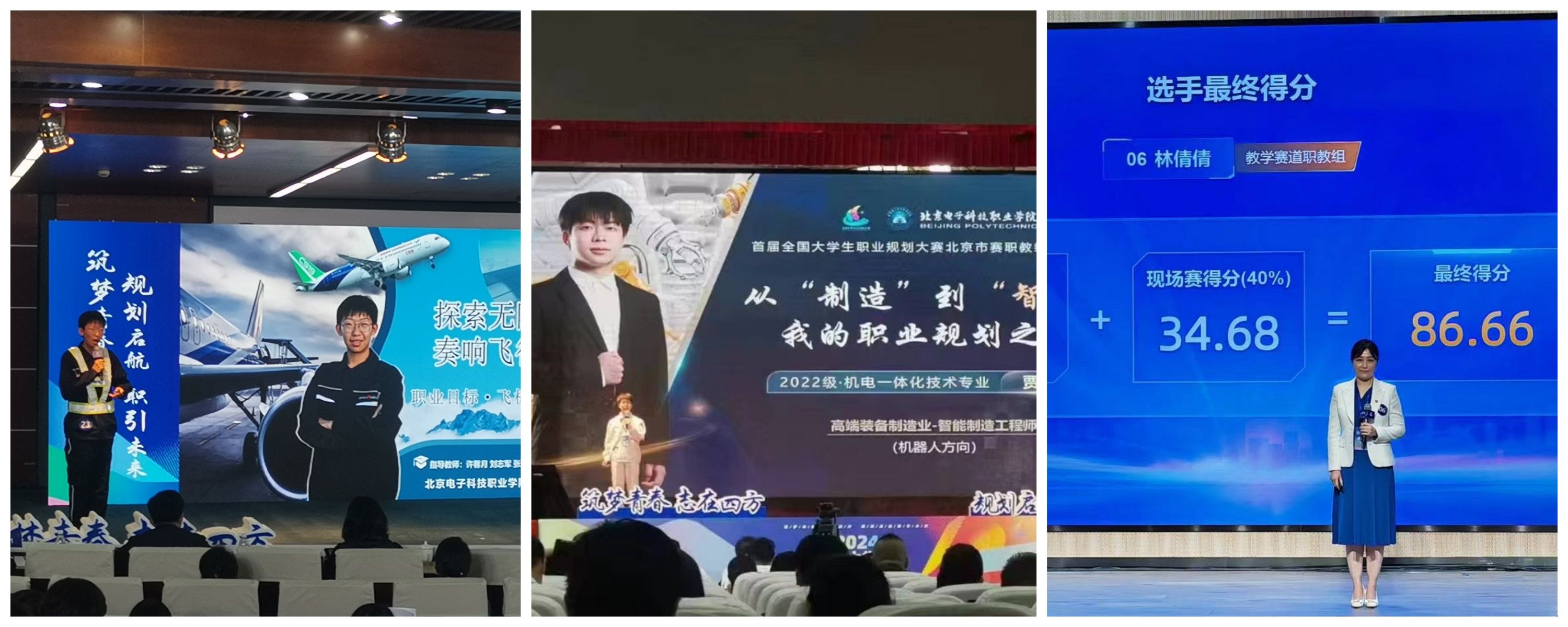 5月10日至11日,首届全国大学生职业规划大赛全国总决赛在上海举办。经过激烈角逐,BEAT365荣获金奖1项、银奖2项,为北京市参加此项大赛成绩最好的高校。航空工程学院学生薛逸飞荣获职教组成长赛道金奖,指导老师为许馨月、刘志军、张滢格;机电工程学院学生贾渭东荣获职教组成长赛道银奖,指导老师为海楠楠、周海君、郑聃;艺术设计学院教师林倩倩荣获课程教学赛道银奖,团队成员为刘正宏、吴效瑜、李珂、陈莉莉。