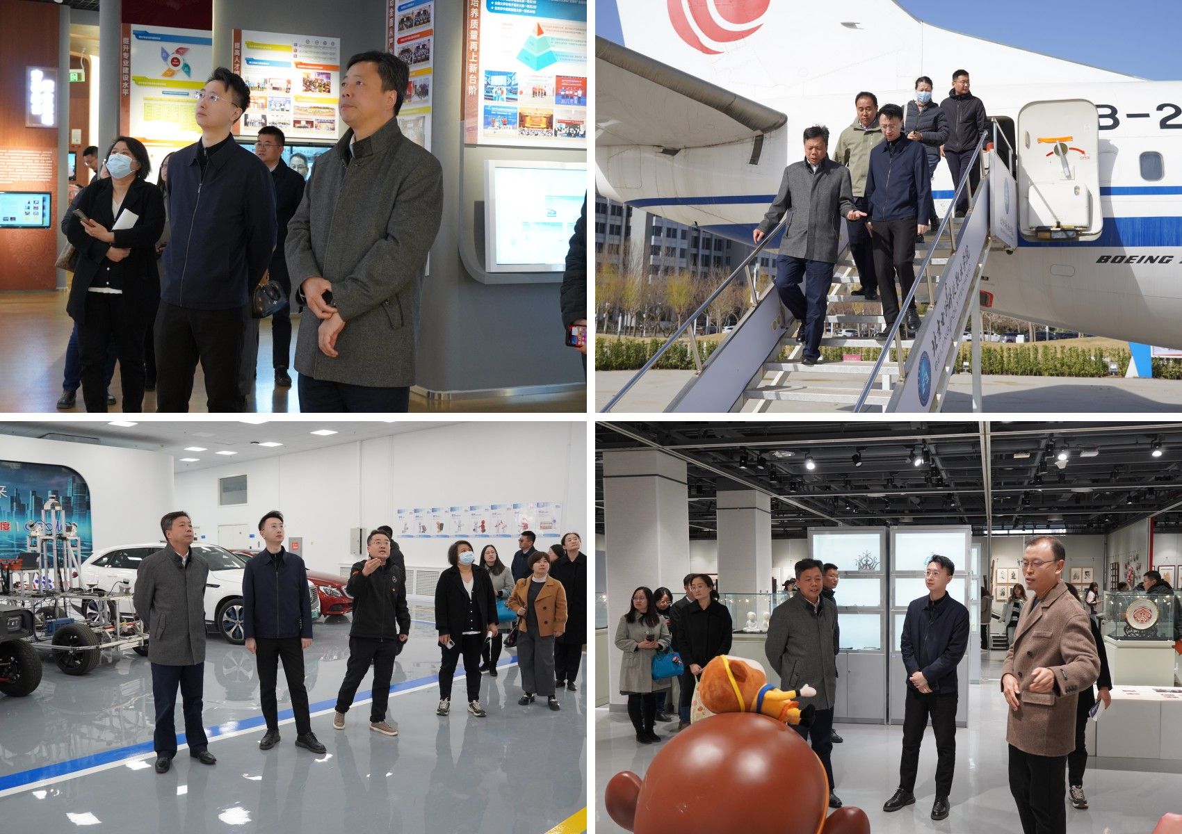 座谈会前,上官子健一行参观了校史馆、航空工程学院飞机维修实训基地、汽车工程学院智能网联汽车技术实训基地和艺术设计学院师生艺术创作品展厅。