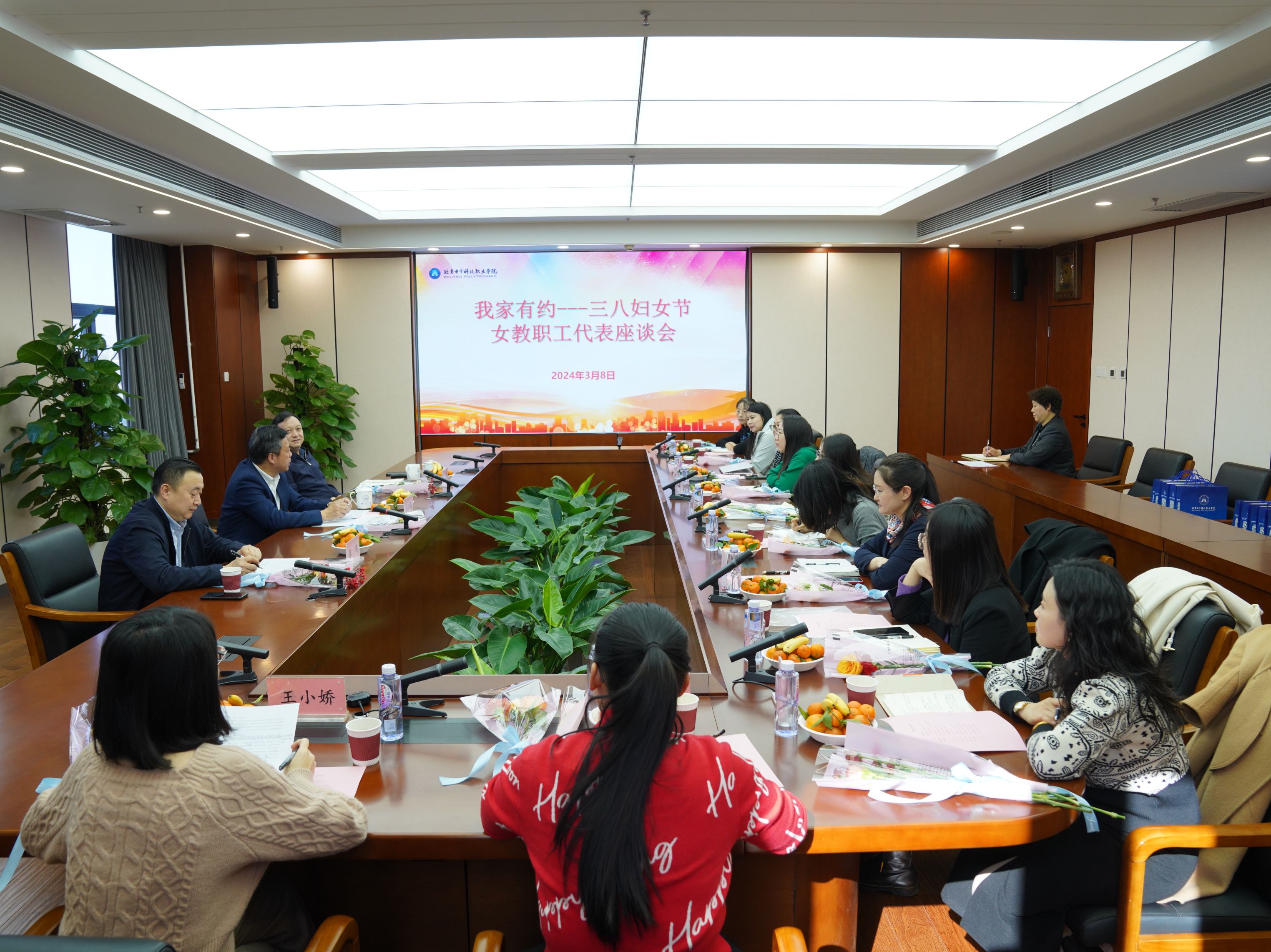 为庆祝第114个三八国际妇女节,体现学校党委对女教职工的关心关爱,学校工会于2024年3月8日上午组织召开了我家有约——三八妇女节女教职工代表座谈会,学校党委书记张启鸿,党委常委、副院长、工会主席陈江锋与11名来自各分工会的女教职工代表一起参加了本次座谈会。