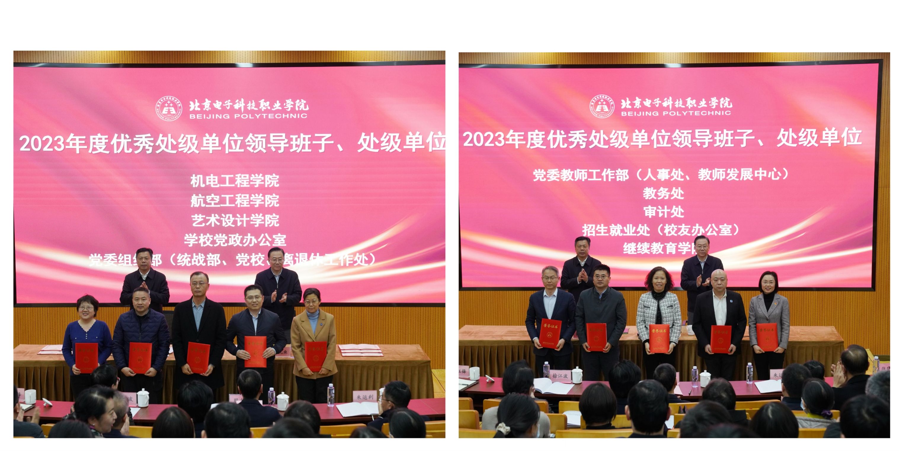 会上,张启鸿、姚光业为2023年度处级单位领导班子和处级单位考核工作中获评“优秀”的集体颁奖。