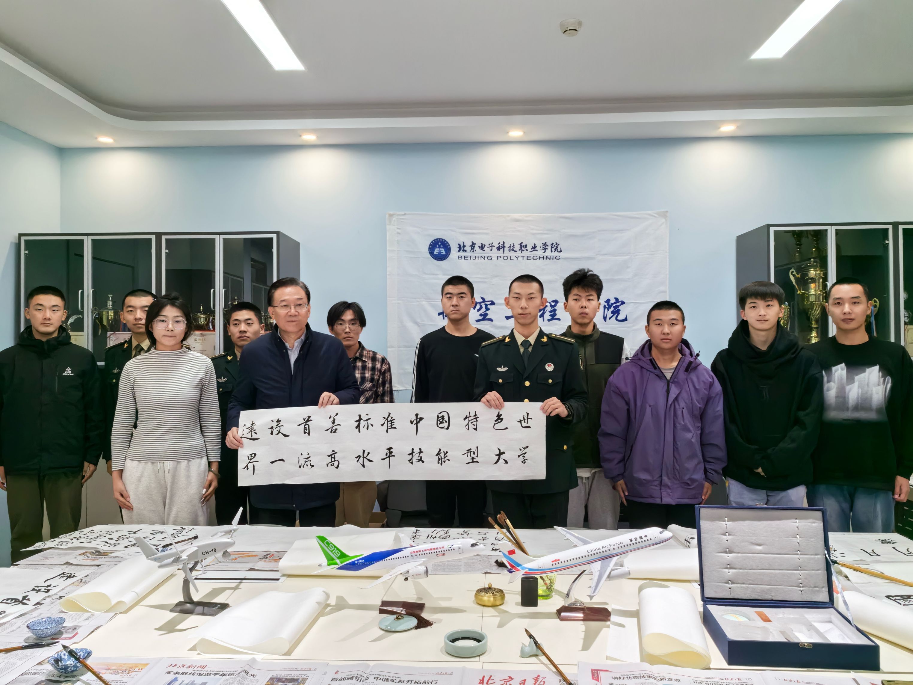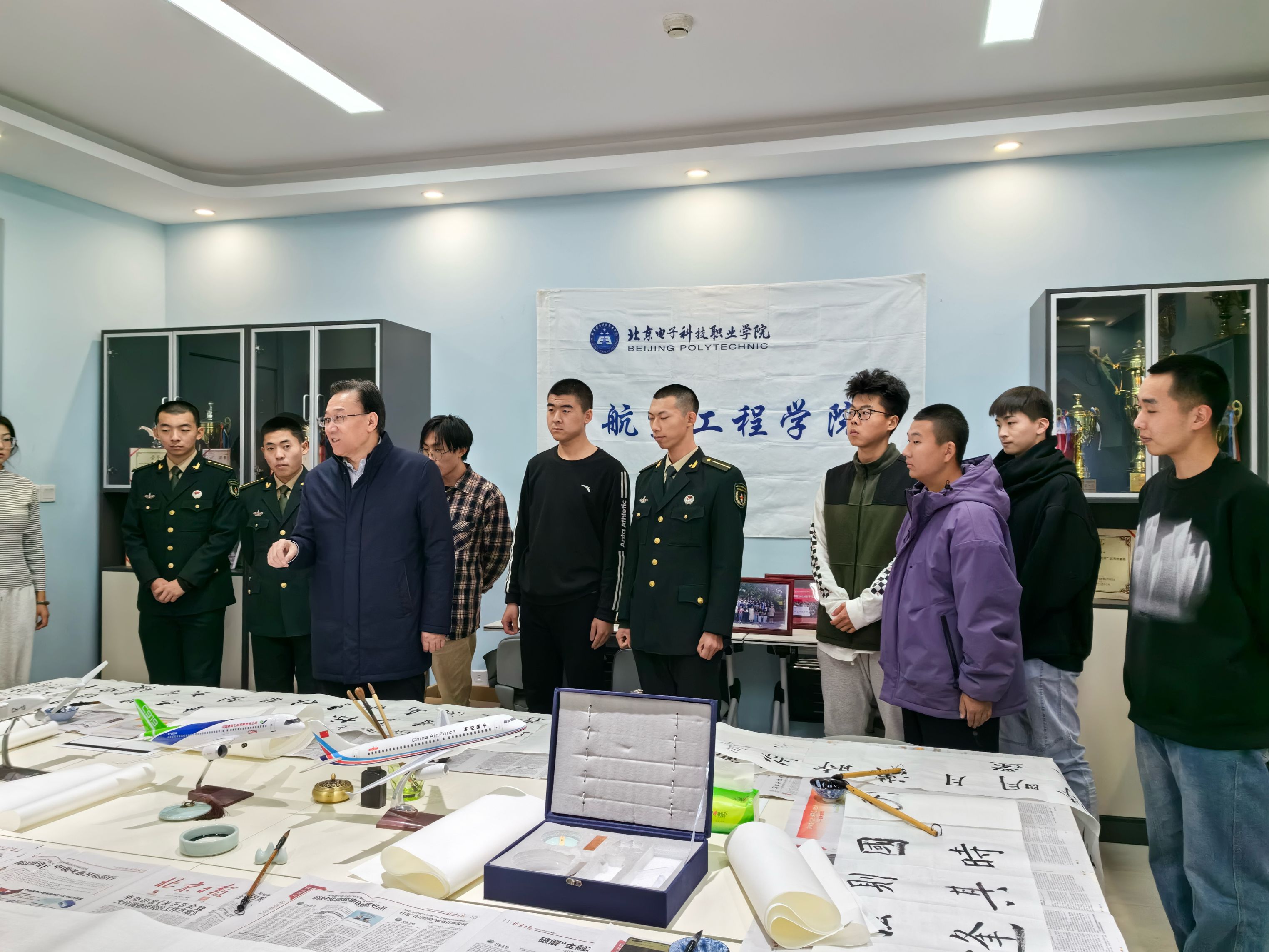 随后,姚光业参观了航空工程学院党团工作站和辅导员工作站,与现场参加书法活动的同学畅谈笔墨之间的法、理、意、韵,希望同学们能够从一撇一捺中感受书法的魅力,继承弘扬中华优秀传统文化。