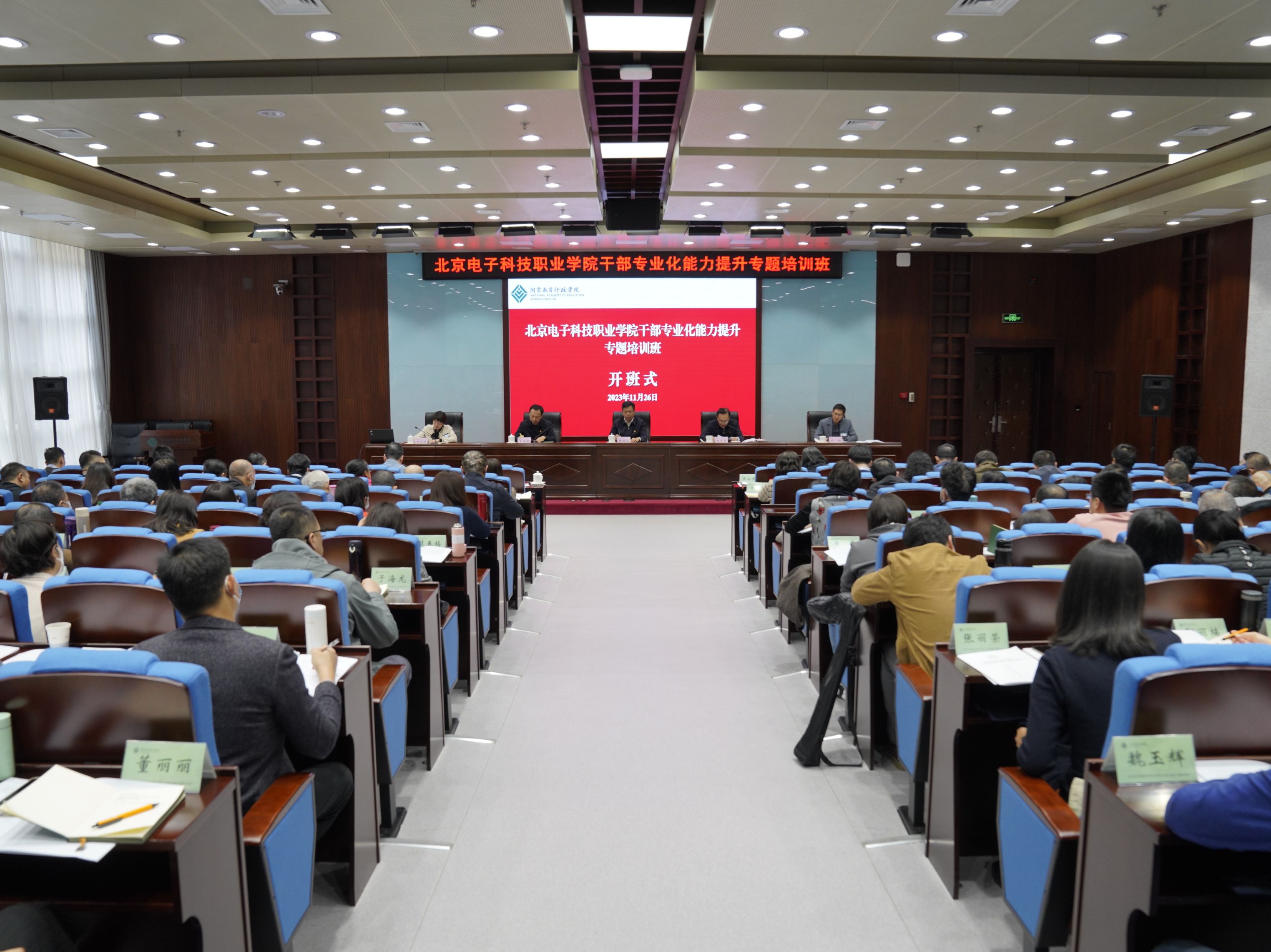 为深入学习贯彻习近平新时代中国特色社会主义思想和党的二十大精神,进一步提高全校干部专业化能力水平,11月26日至28日,北京电子科技职业学院干部专业化能力提升专题培训班在国家教育行政学院举行。学校党委高度重视此次培训,召开会议专题研究部署,党委组织部系统谋划、精心组织,党委书记张启鸿在结业仪式上作总结讲话,党委副书记、院长姚光业在开班仪式上作动员讲话,国家教育行政学院党委副书记、纪委书记李雪明出席开班式。