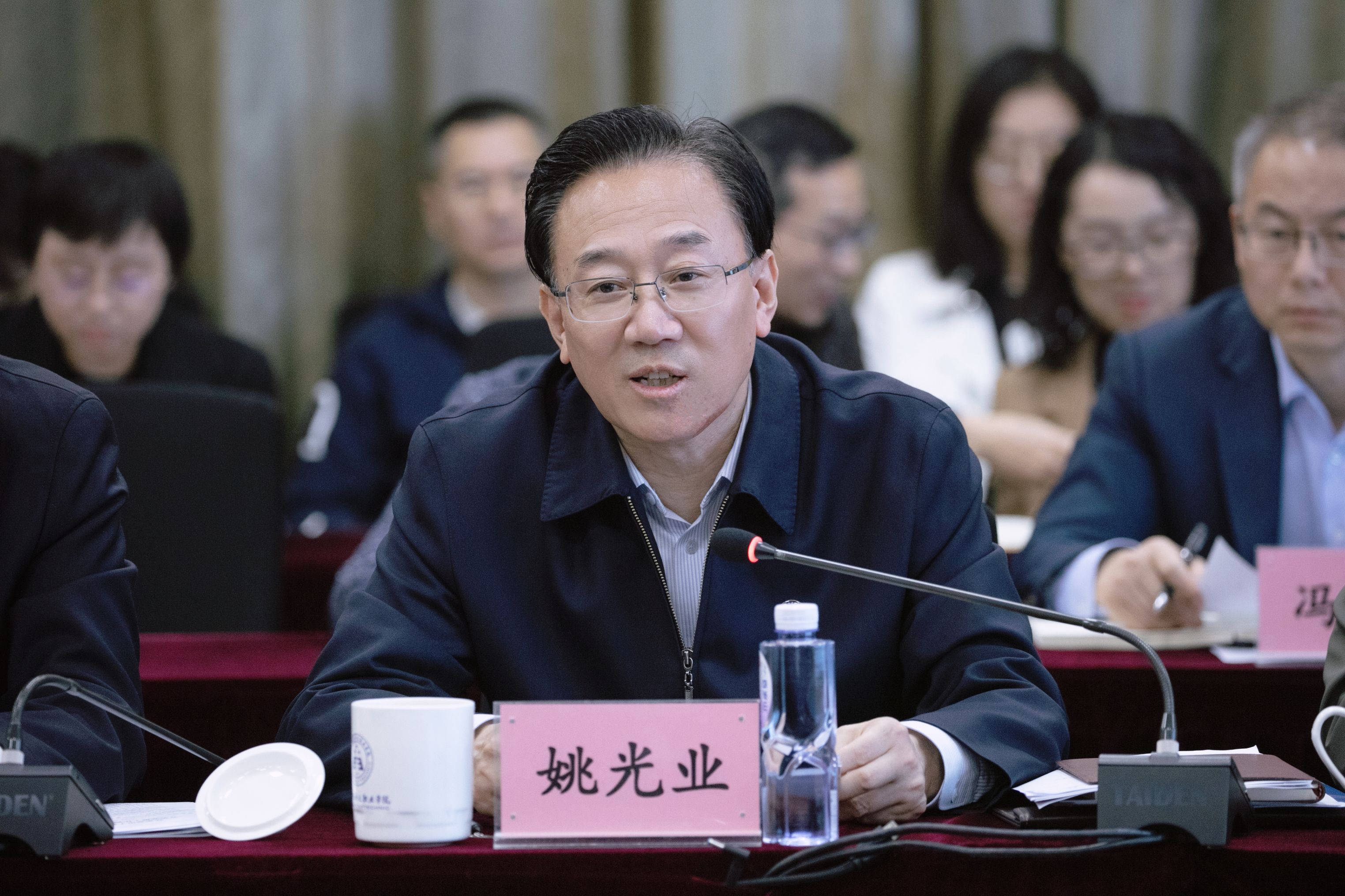 姚光业代表学校作工作汇报,他介绍了学校近年来取得的标志性成果,并从坚持党建引领、聚焦建高升本、推进“三融创新”、深化综合改革等方面汇报了学校当前的重点任务。结合学校办学定位和特色优势,着重对学校2023年分类发展项目的主要做法、建设内容及其他项目相关情况进行了汇报。