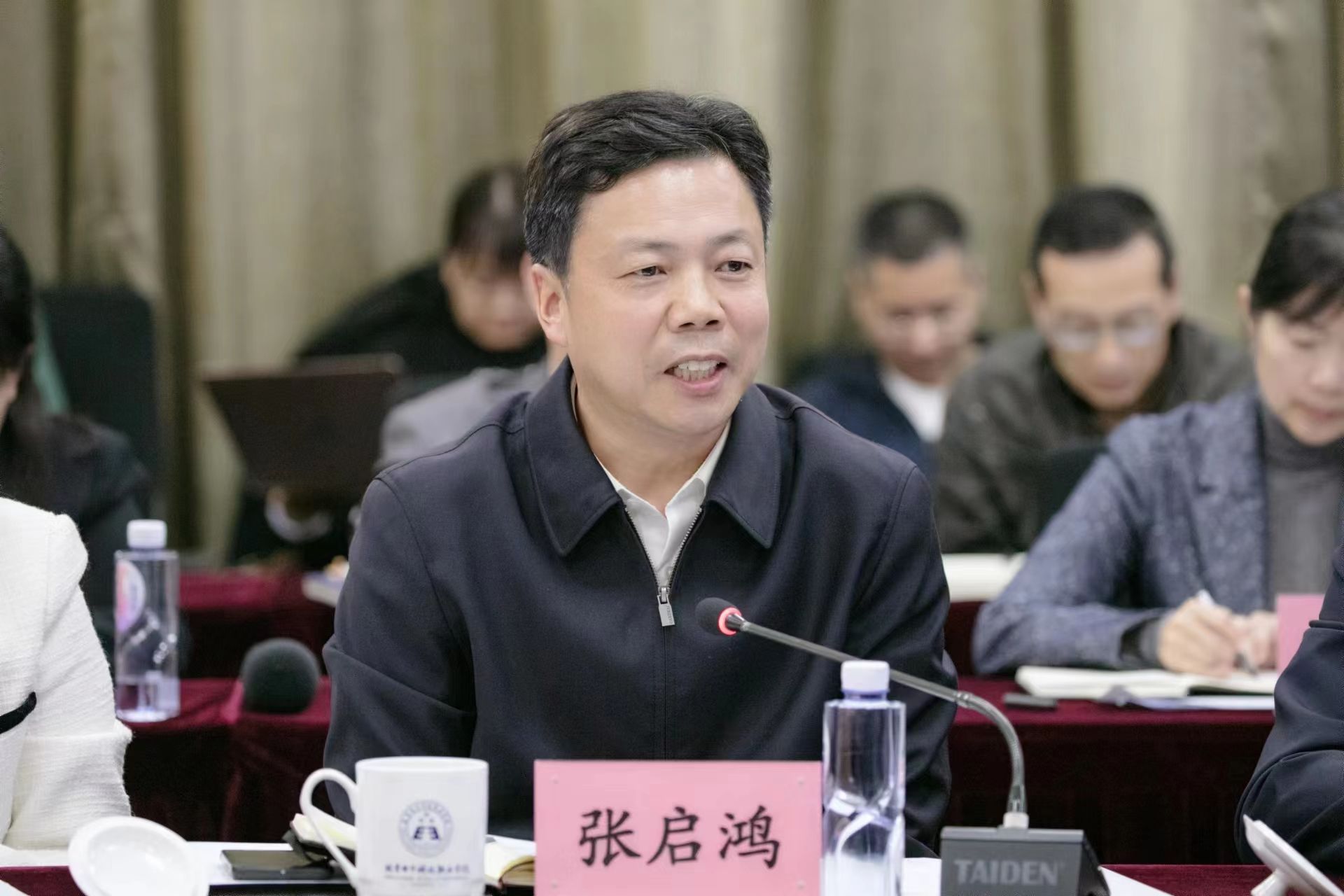 张启鸿代表学校做表态发言,欢迎各位领导莅临调研,并对市委市政府、市教育两委及各部门长期以来对学校的关心、支持和帮助表示感谢。他表示,学校将认真落实市教育两委的指导意见和建议,高站位统筹好分类发展项目与事业全面发展,高标准推进分类发展项目立项和建设,高效能落实好分类发展绩效考核导向和要求,主动服务首都“四个中心”功能建设,聚焦首都高精尖产业、高质量民生、城市运行发展需要,锚定高水平技能型大学建设目标,以分类发展项目建设为契机,加强前瞻性思考、全局性谋划,大胆探索、勇于创新,不断提升学校对首都高质量发展的支撑力和贡献力,回答好教育强国建设的时代命题。