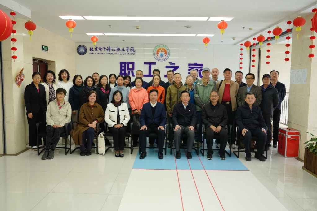 学校领导与退休教职工代表在教工之家合影留念。